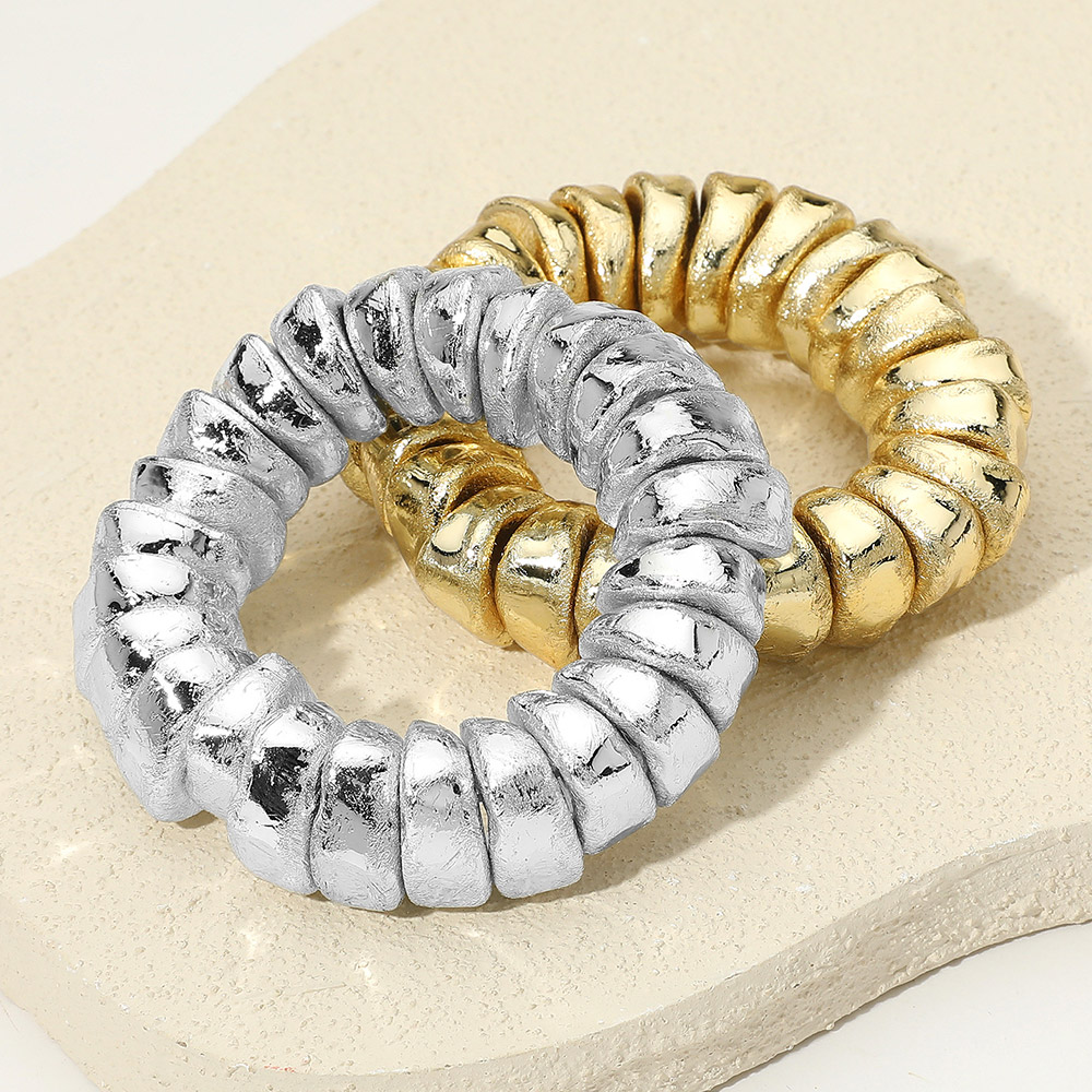 Chunky Textured Organic Nugget Metal Beaded Stretch Bracelet