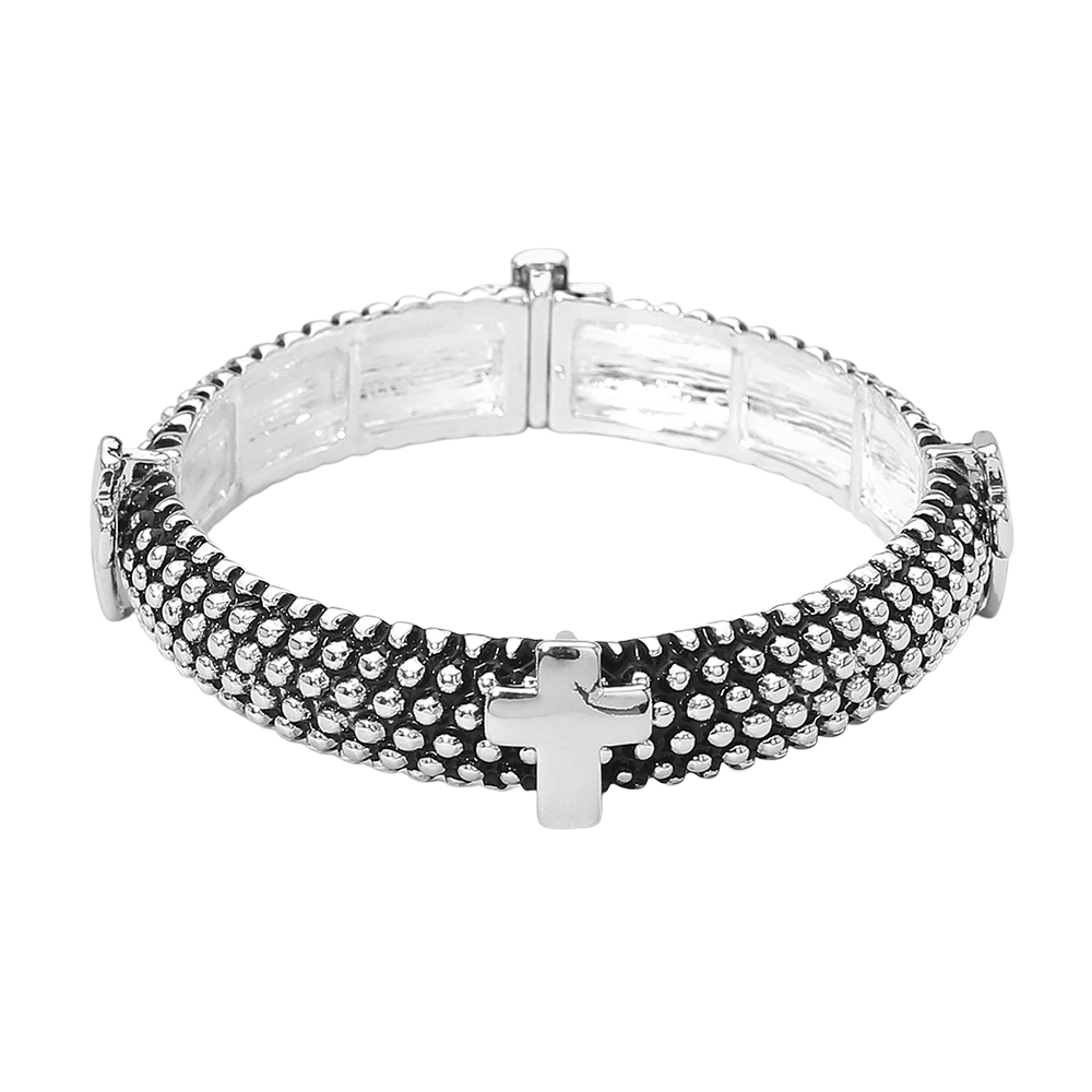 Cross Accent Beaded Metal Stretch Bracelet Cross Accent Beaded Metal Stretch Bracelet Cross Accent Beaded Metal Stretch Bracelet