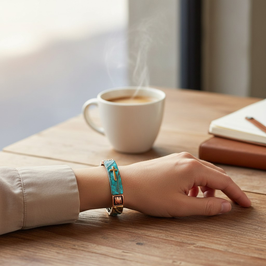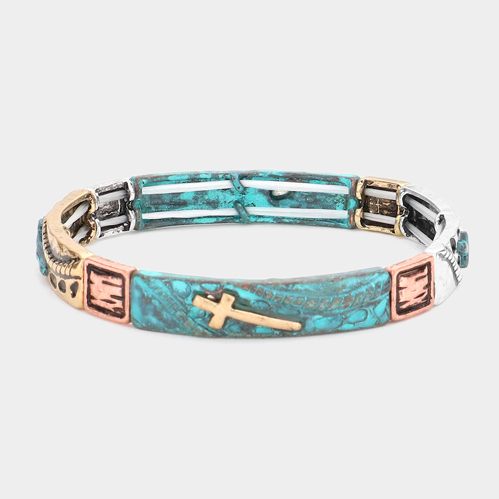 Lord's Prayer Message Antique Cross Charm Bracelet