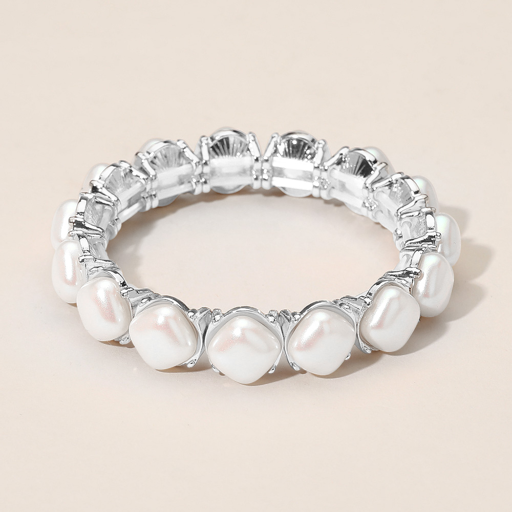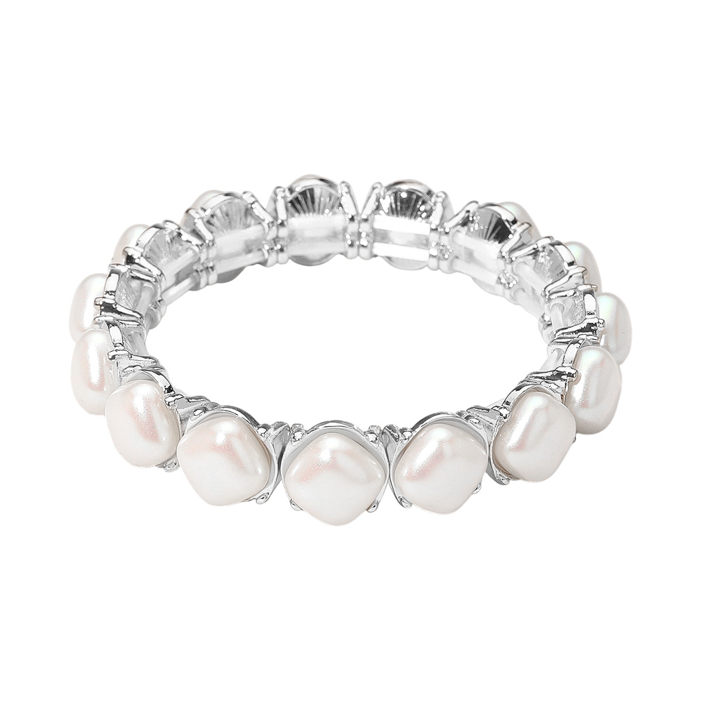 Details • Size : 0.5" H • Stretchable • Refine your look with this square pearl stretch bracelet featuring a timeless and elegant design. Perfect for weddings, parties, or daily sophistication, this versatile accessory adds a touch of classic beauty and effortless charm to any outfit. • Lead and Nickel Compliant