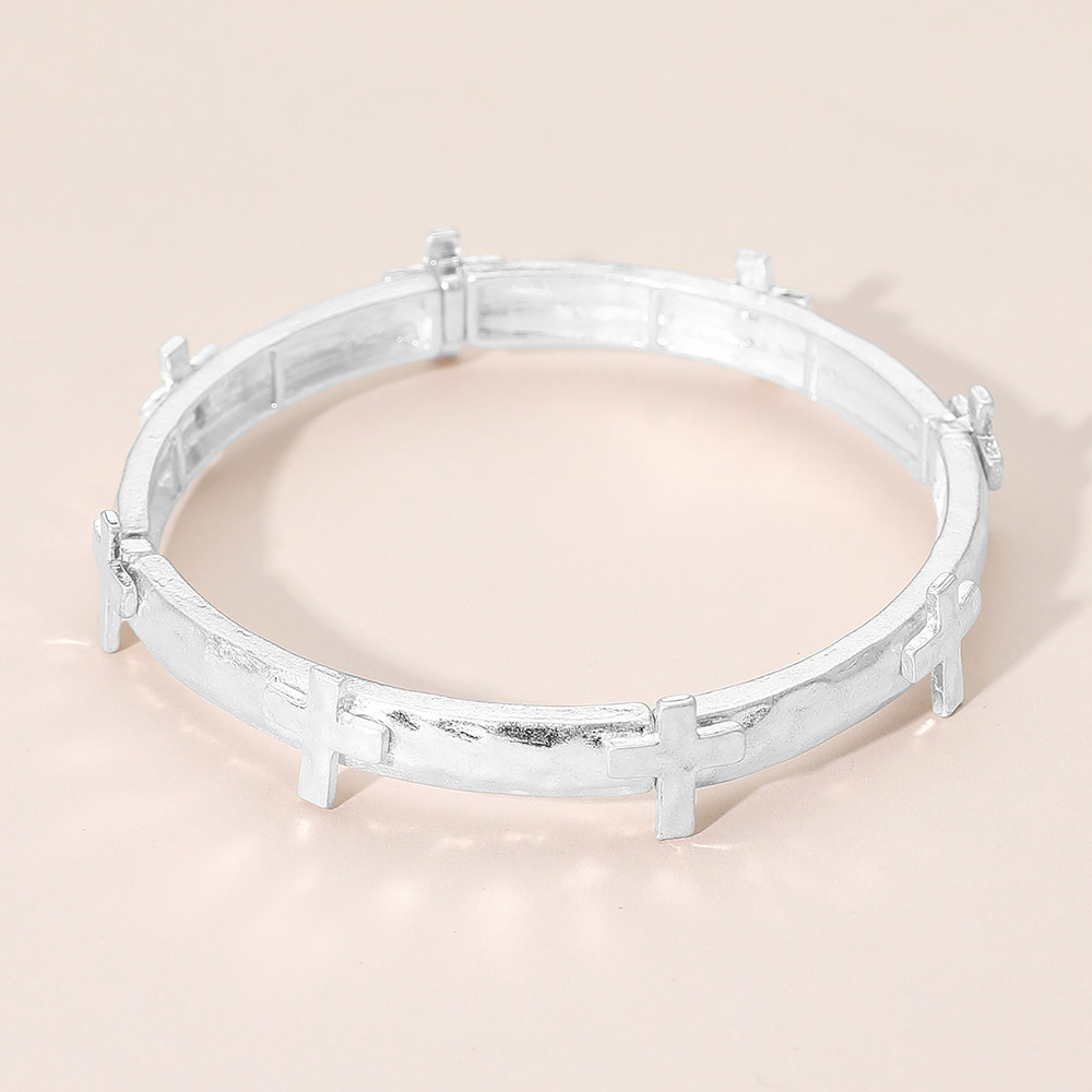 Details • Size : 0.5" H, 2.5" D • Stretchable • Express your style with this elegant stretch bracelet featuring subtle cross accents for a touch of meaning and simplicity. Designed for comfort and versatility, it pairs beautifully with casual or dressy looks, making it a timeless accessory for any jewelry collection. • Lead and Nickel Compliant