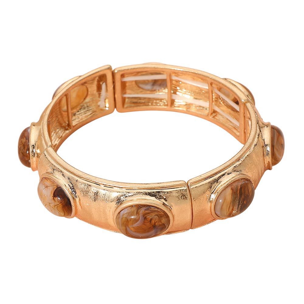 Marbled Oval Stone Accent Hammered Metal Beaded Stretch Bracelet