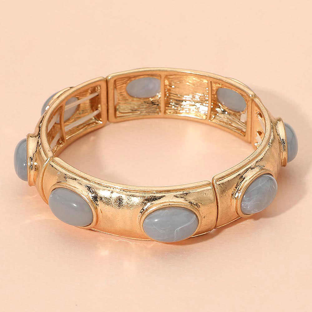 • This textured stretch bracelet is adorned with oval cabochon-style accents, giving it a bold and artistic appeal. Designed for comfort and easy wear, it’s a versatile piece that adds a touch of statement style to both casual and dressy outfits.