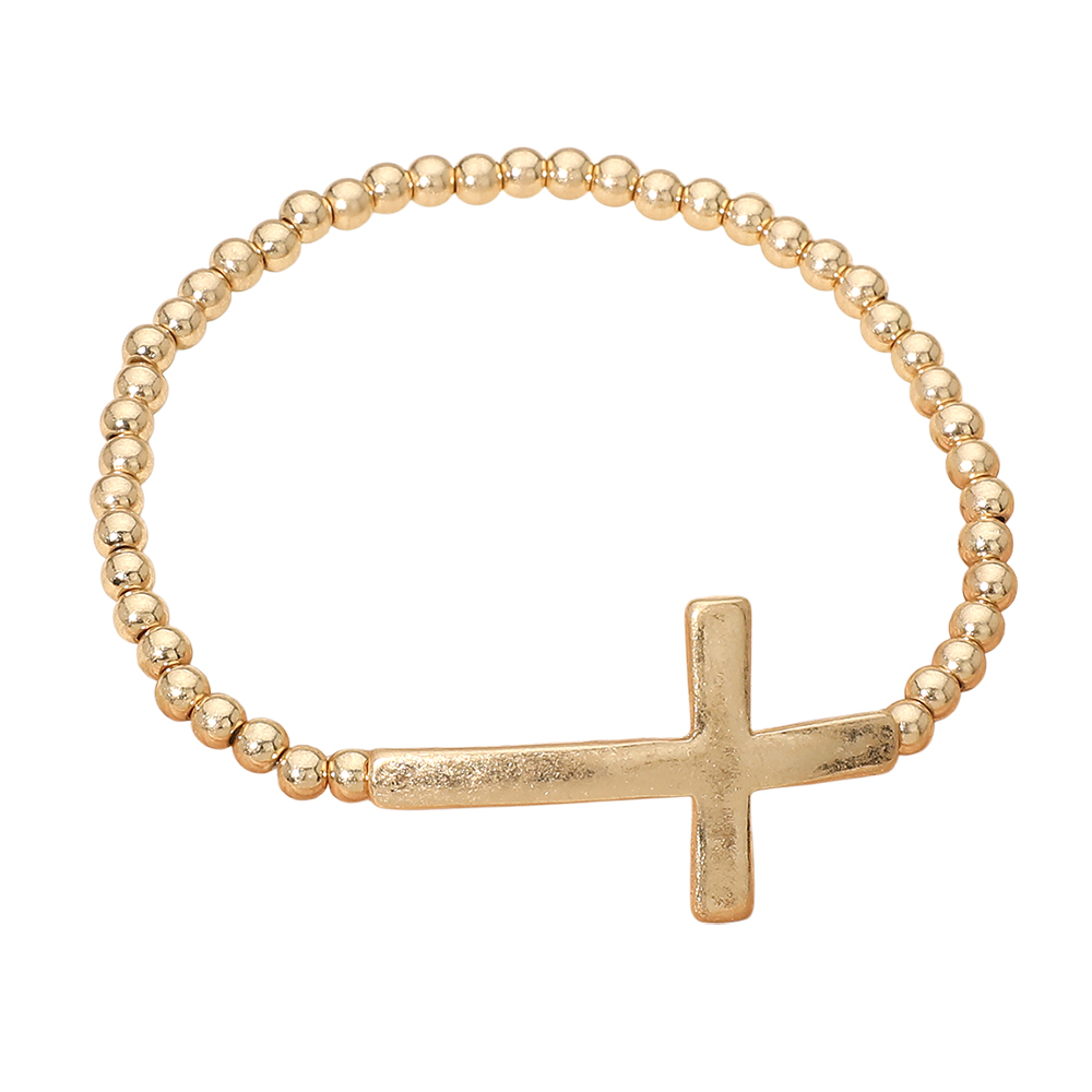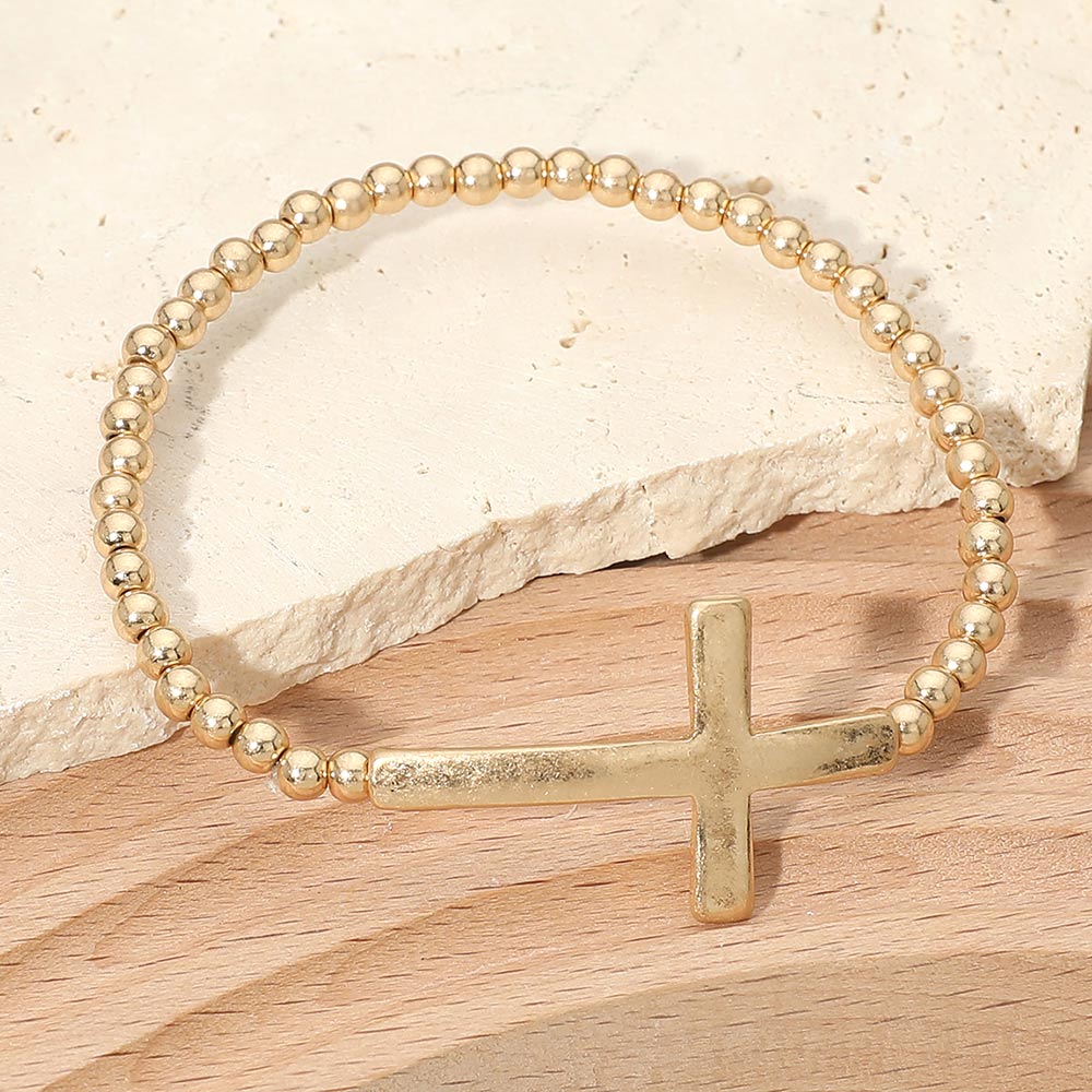 Metal Cross Accent Beaded Stretch Bracelet Metal Cross Accent Beaded Stretch Bracelet Metal Cross Accent Beaded Stretch Bracelet