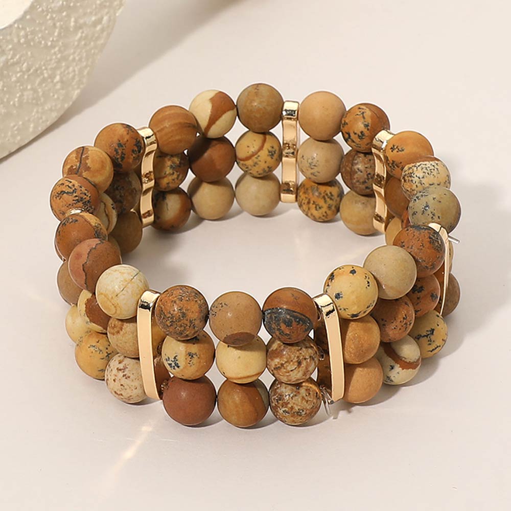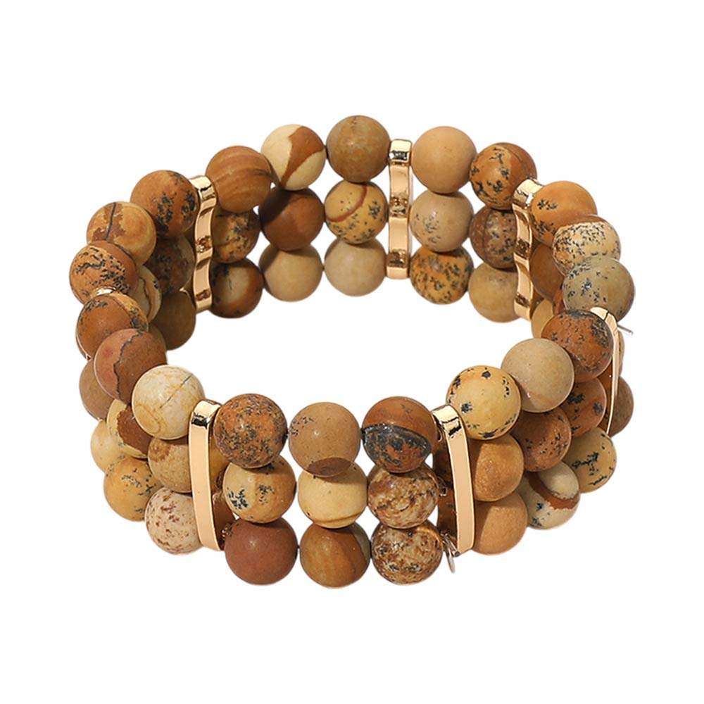 Details • Size : 1" H • Stretchable • Stylish multi row stretch bracelet designed with round beads and sleek spacer accents for a balanced, layered look. Easy slip-on fit offers comfort and flexibility for everyday wear. A versatile accessory ideal for casual outfits, boutique collections, stacking styles, and giftable fashion jewelry displays. • Lead and Nickel Compliant
