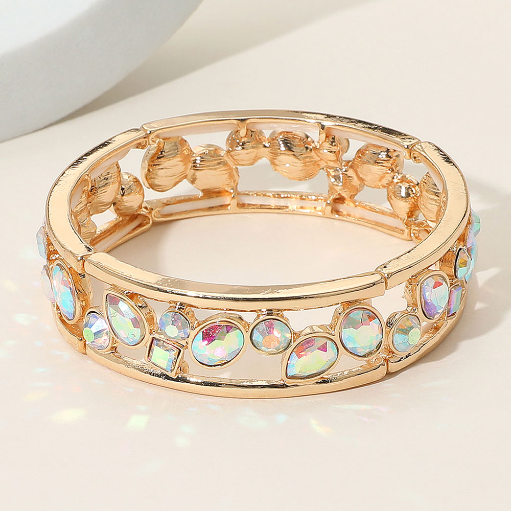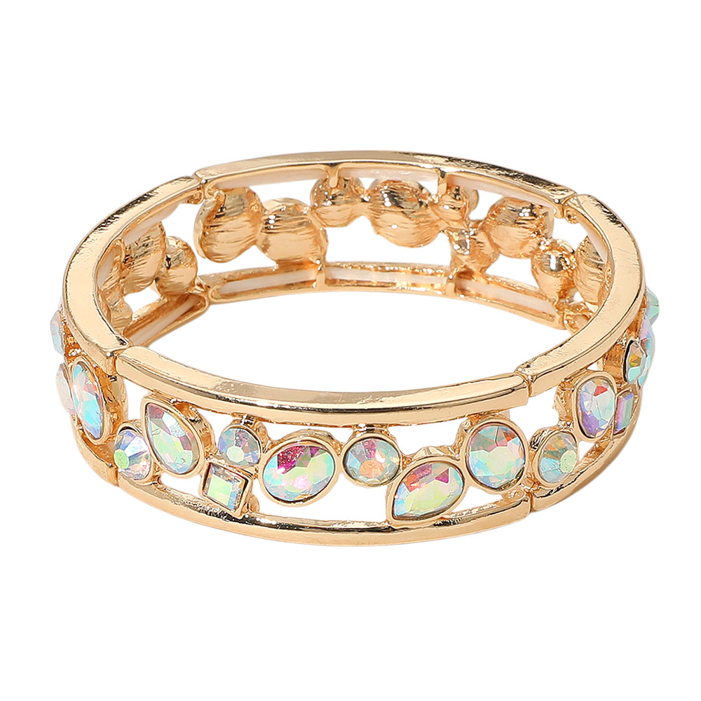 Multicolor Various Shaped Stone Bezel Embellished Open Frame Stretch Bracelet