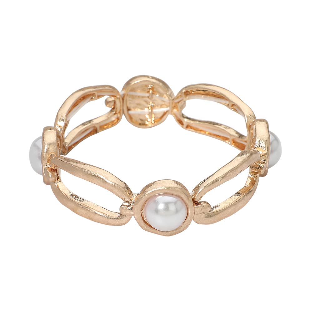Details • Size : 0.7" H • Stretchable • Elegant stretch bracelet designed with sculpted link shapes and smooth pearl-style accents for a refined yet modern look. The flexible slip-on fit offers all-day comfort and easy wear. Perfect for stacking or wearing alone, this bracelet adds timeless charm to everyday outfits, boutique collections, or gift-ready assortments. • Lead and Nickel Compliant