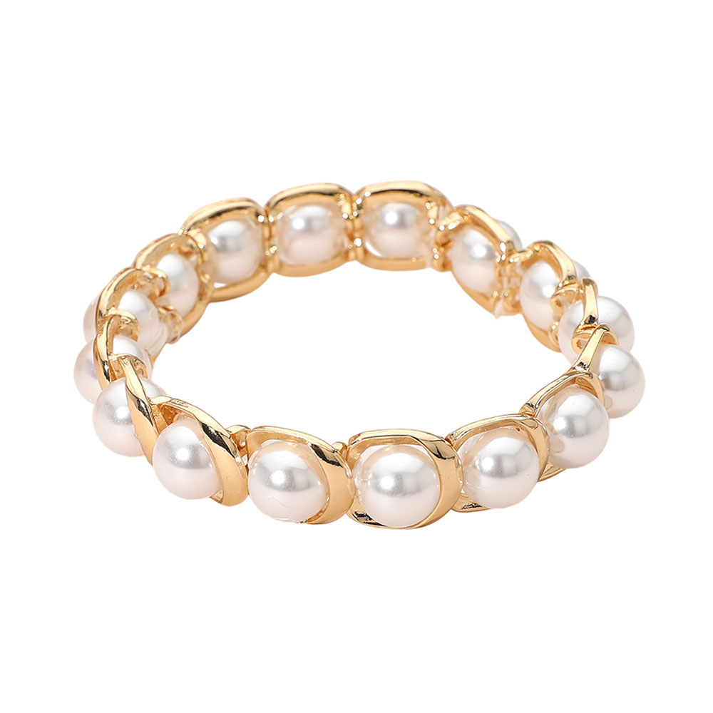 Details • Size : 0.8" H • Stretchable • Elegant pearl bead stretch bracelet designed with smooth rounded detailing for a refined, effortless look. Comfortable slide-on fit makes it ideal for daily wear, stacking with other favorites, or styling alone as a subtle statement for casual, work, or evening outfits. • Lead and Nickel Compliant