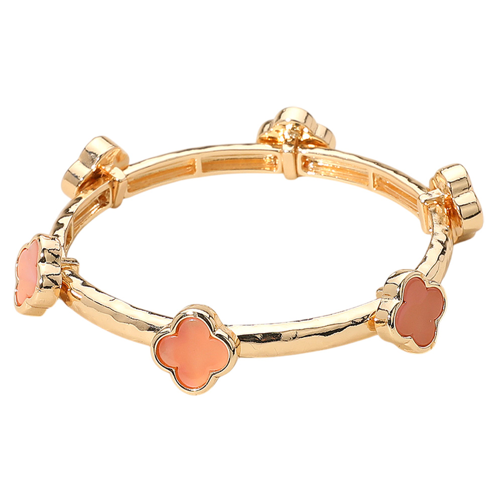 SECRET BOX_Stone Paved Quatrefoil Brass Metal Ball Beaded Stretch Bracelet