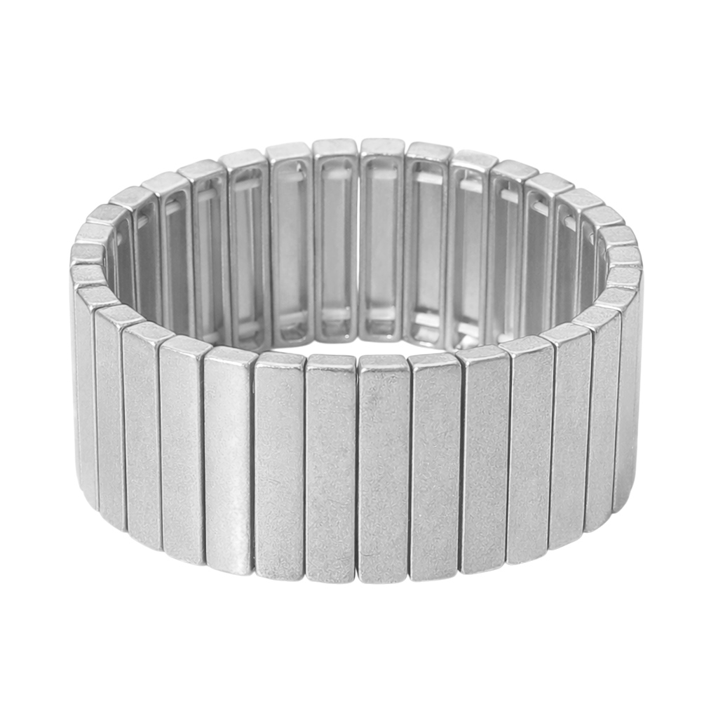 • Wide stretch bracelet featuring smooth rectangular links arranged in a bold, uniform panel design. Flexible, easy to wear, and perfect for adding a modern, statement touch to everyday or evening outfits. A standout accessory with a clean, structured look.