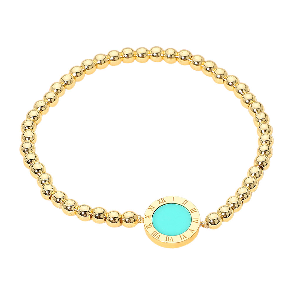 Details • Size : 0.5" H • Stretchable • This elegant gold beaded bracelet features a chic disc charm with Roman numerals, offering a unique twist to your accessories collection. A perfect fusion of timeless sophistication and modern style, this bracelet adds a touch of class to any outfit, making it ideal for both casual and formal occasions. • Stainless Steel