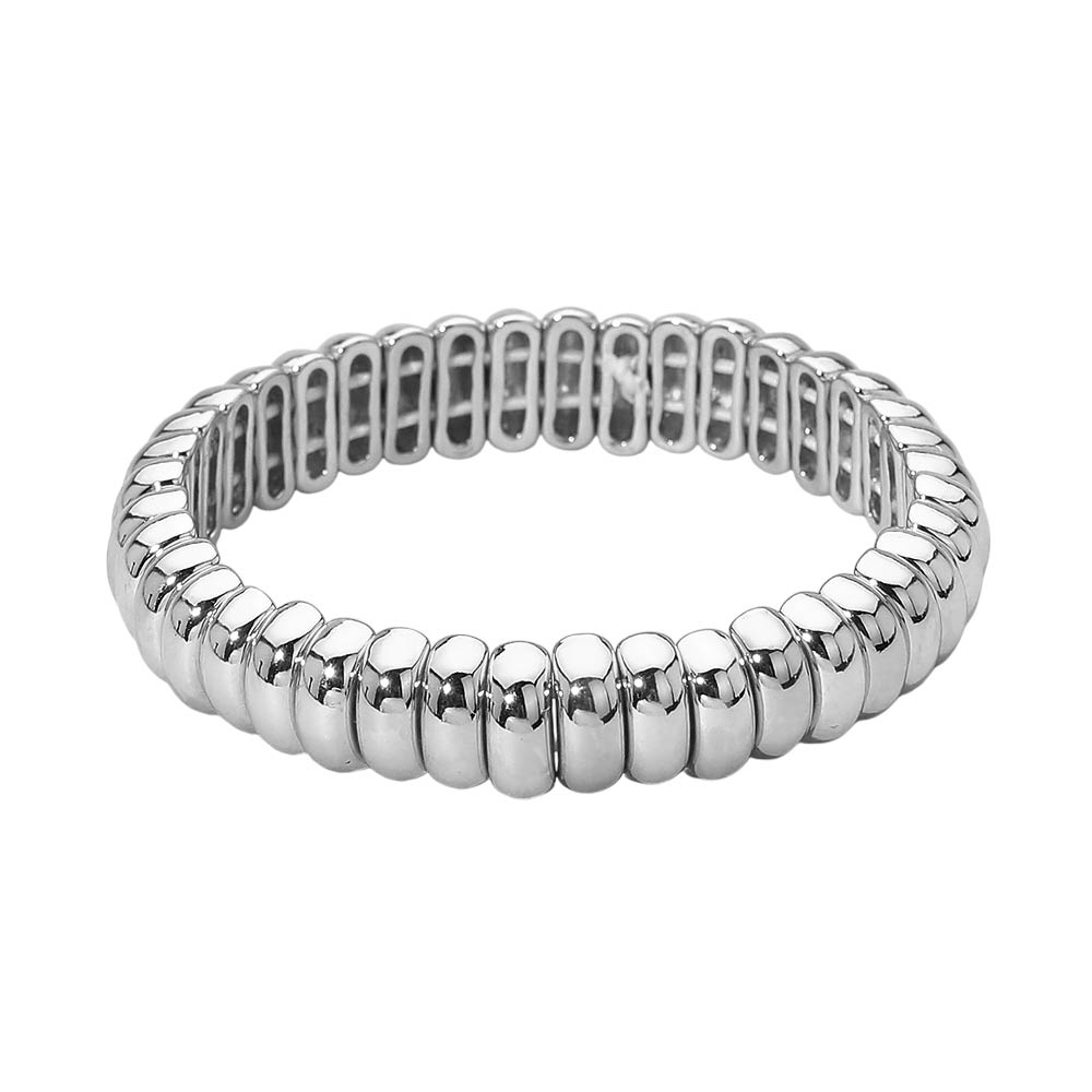 Details • Size : 0.5" H • Stretchable • This classic stretch link bracelet showcases smooth, rounded links arranged in a clean, uniform design. The flexible stretch construction allows for easy on-and-off wear while delivering a polished, timeless look. A versatile accessory suited for everyday styling, layering, boutique displays, and gift-ready collections. • Lead and Nickel Compliant