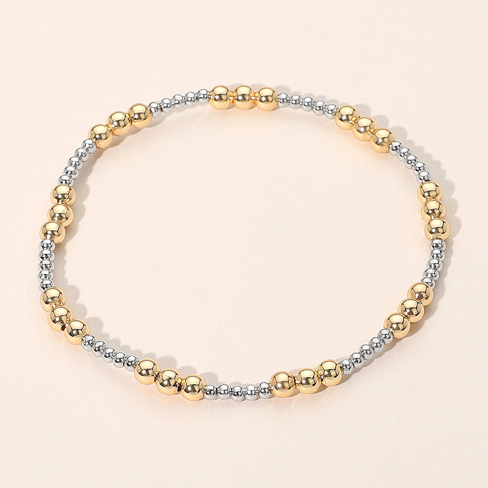 • Stylish stretch bracelet featuring alternating smooth metal beads. Lightweight and comfortable design ideal for everyday wear or stacking with other bracelets.