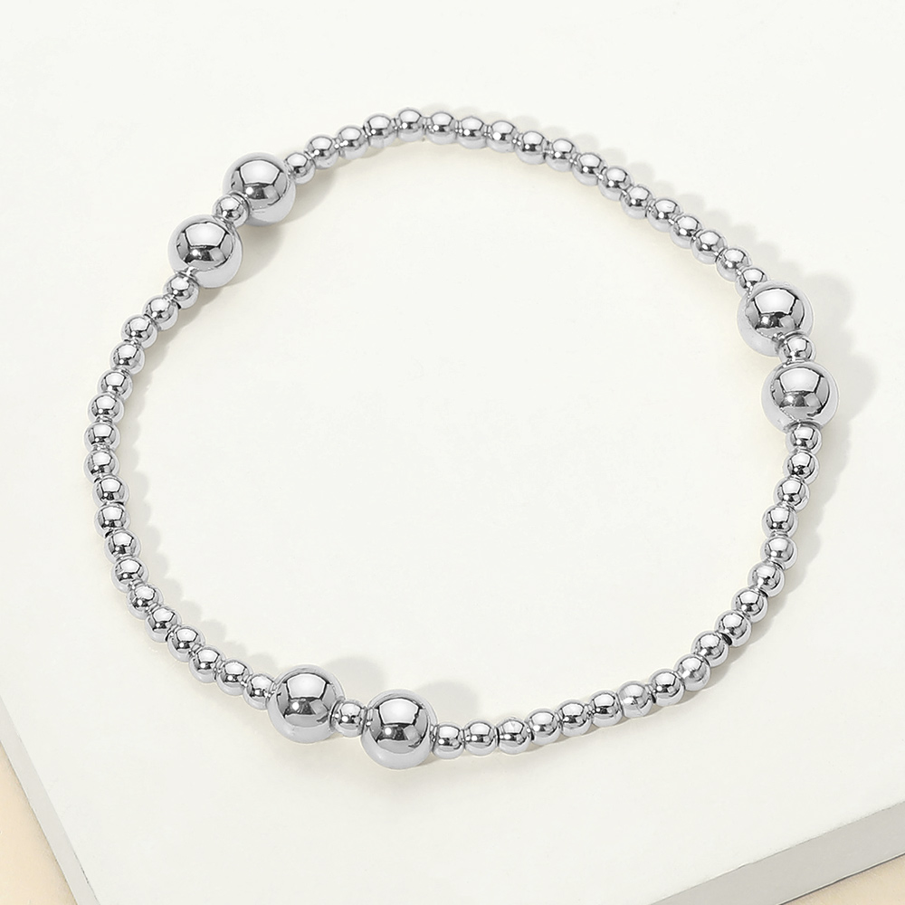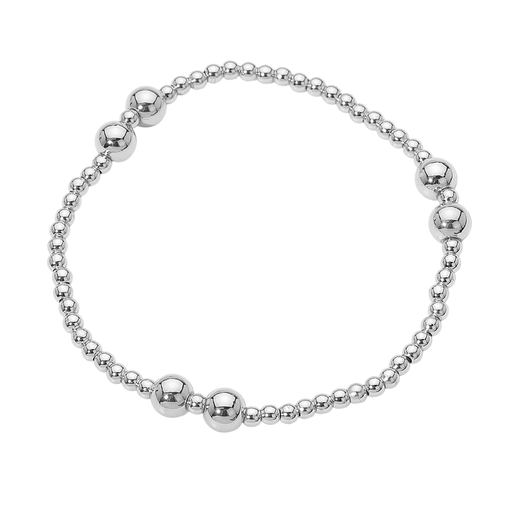 Details • Size : 0.2" H • Stretchable • This stretch bracelet showcases a refined mix of graduated round beads for a balanced, modern silhouette. Designed for easy slip-on wear, it delivers all-day comfort and effortless styling. Ideal for stacking or wearing alone, this versatile bracelet suits everyday looks, special occasions, and curated accessory collections while offering a clean, timeless appeal. • Stainless Steel