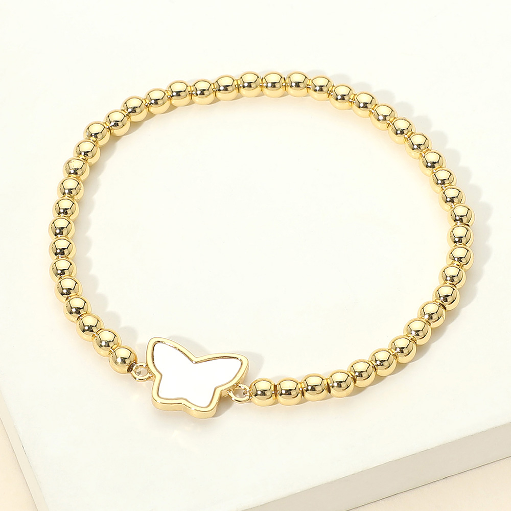 Details • Size : 0.4" H • Stretchable • This stretch bracelet features smooth rounded beads accented with a delicate butterfly charm for a graceful, symbolic look. Designed for easy slip-on wear and everyday comfort, it offers a balanced blend of charm and simplicity. Ideal for gifting, seasonal assortments, or daily styling, this bracelet layers effortlessly or stands beautifully on its own while adding a soft, whimsical touch to any accessory collection. • Stainless Steel