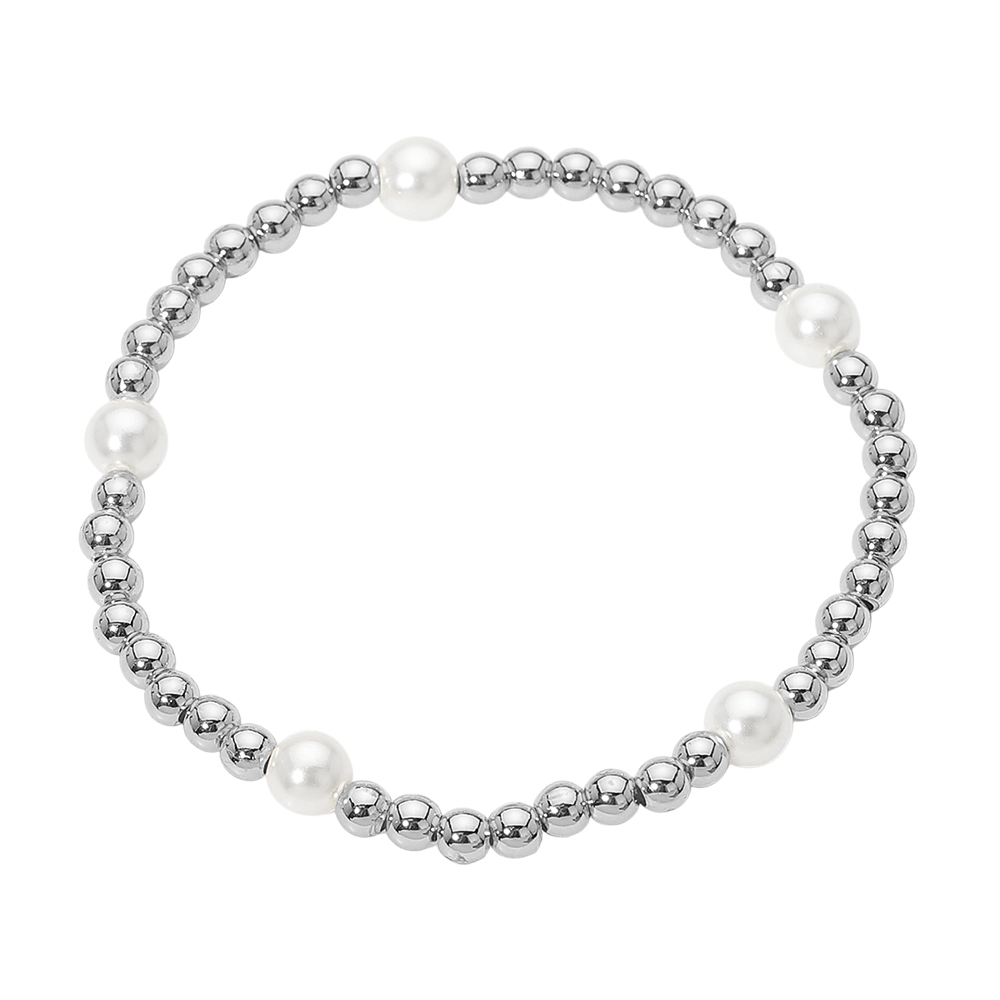 Details • Size : 0.25" H • Stretchable • This beaded stretch bracelet features a balanced design highlighted by smooth pearl accents for a refined, timeless look. Easy to wear and comfortable for daily styling, it layers effortlessly with other bracelets or stands out on its own. A versatile accessory suited for casual outfits, workwear, or special occasions, adding subtle elegance to any jewelry collection. • Stainless Steel