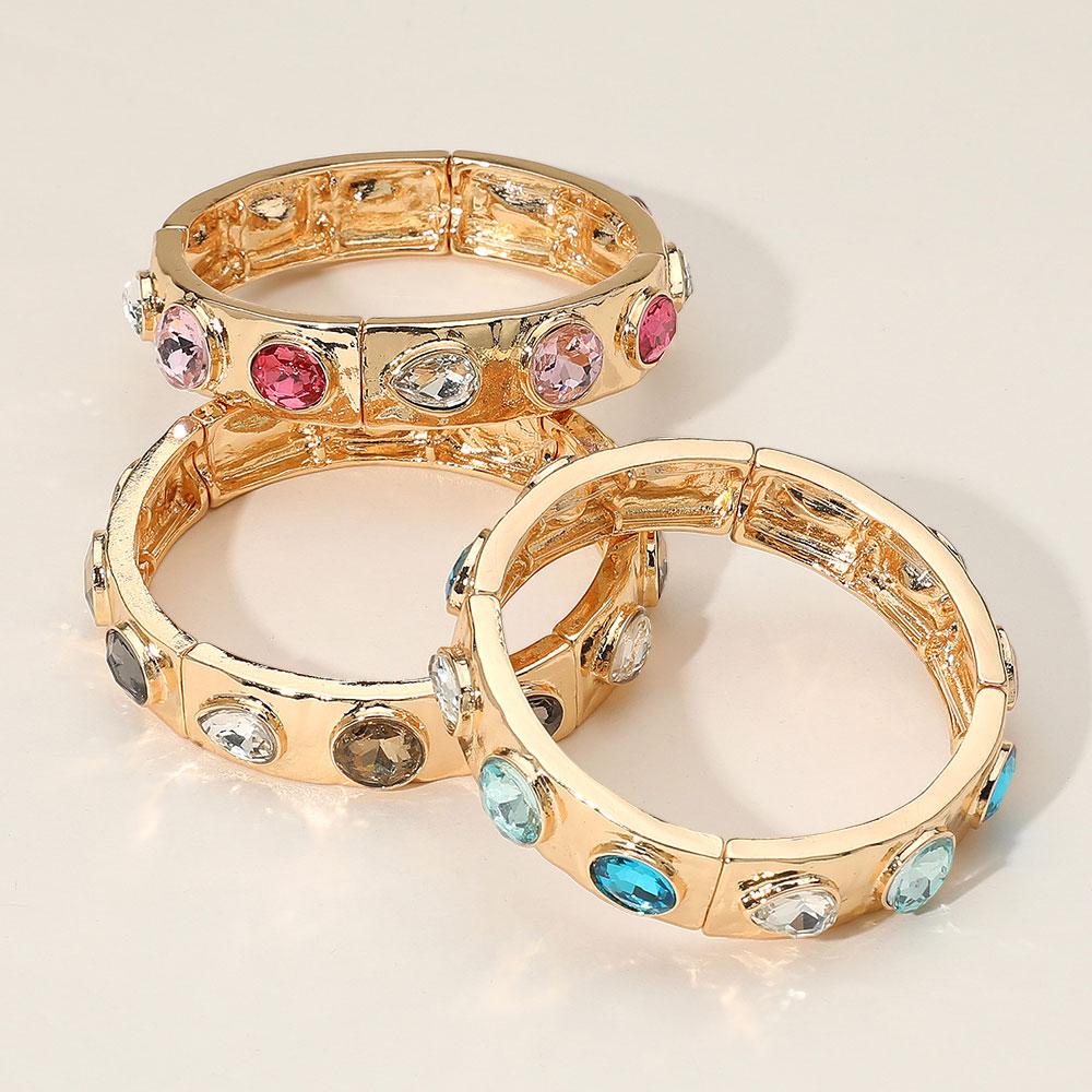 Teardrop Oval Round Stone Embellished Stretch Bracelet