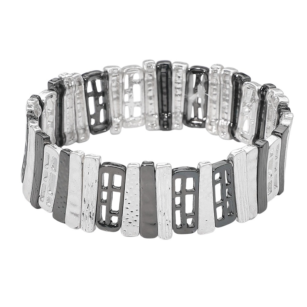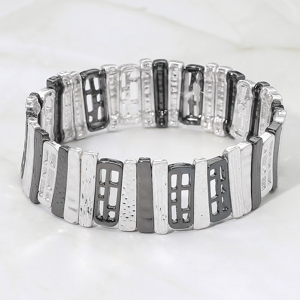 • Add sleek contemporary flair to your look with this geometric multi-bar stretch bracelet. Designed with textured and cutout details, it offers a bold, artistic touch that complements casual outfits and statement ensembles, providing a comfortable fit with striking modern appeal.