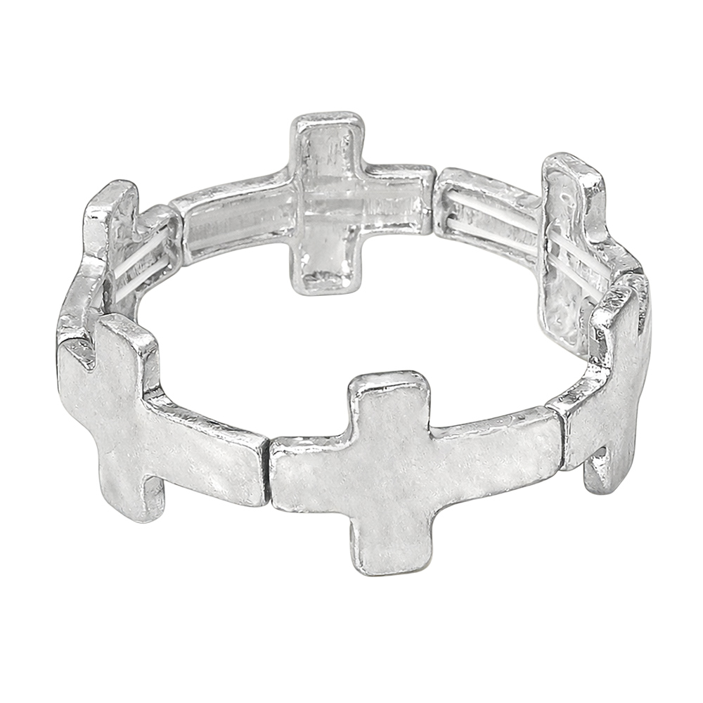Worn Metal Cross Stretch Bracelet