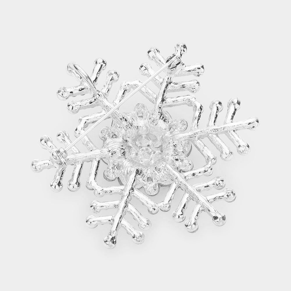 Details • Size : 2.5" L • Dual : Brooch / Pendant • Elegant snowflake brooch pin adorned with sparkling rhinestones, perfect for adding a festive touch to winter outfits, coats, scarves, or hats. Ideal accessory for holiday parties, weddings, or as a thoughtful seasonal gift. A stylish way to showcase charm and elegance during the winter season. • Lead and Nickel Compliant