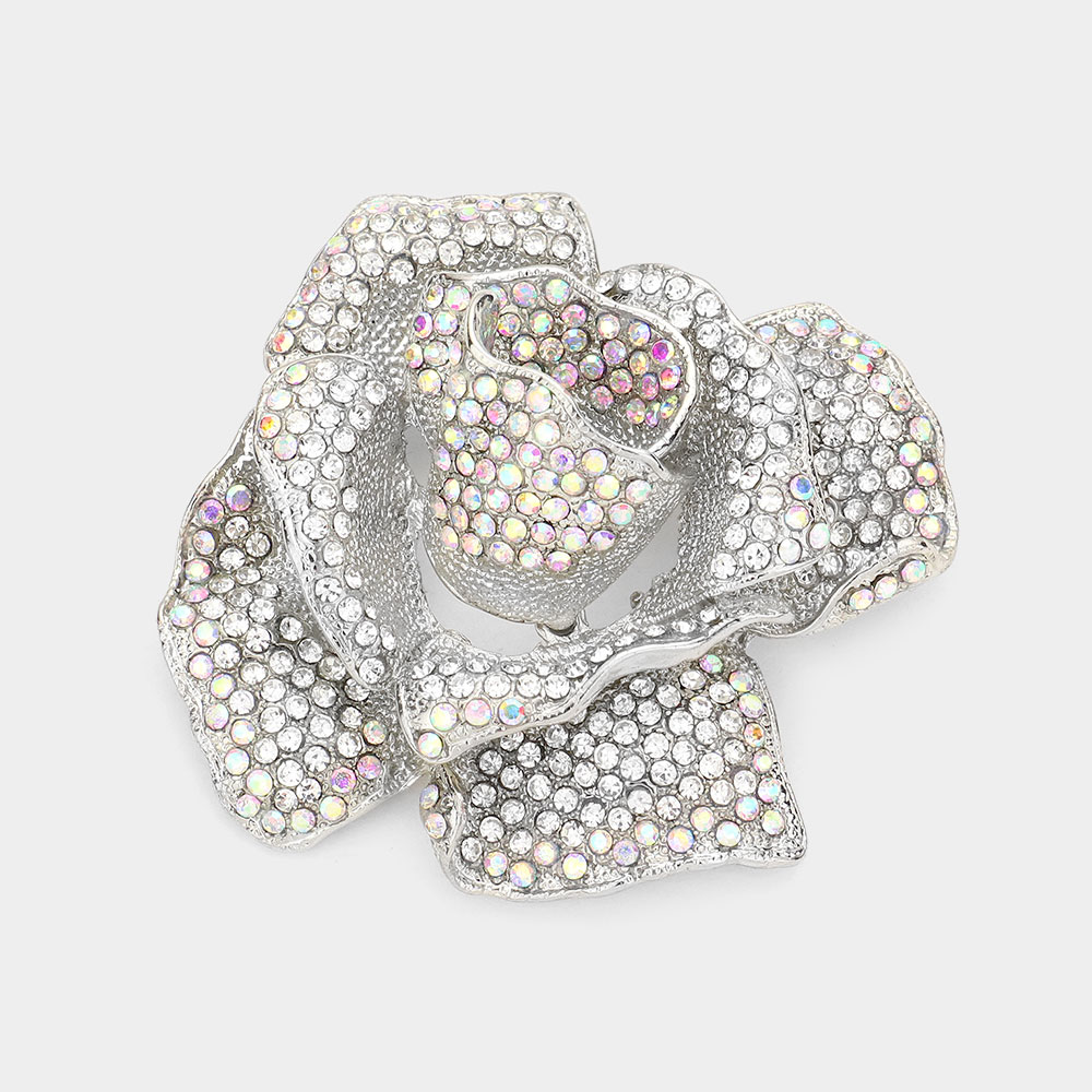 Crystal Pave Rose Brooch