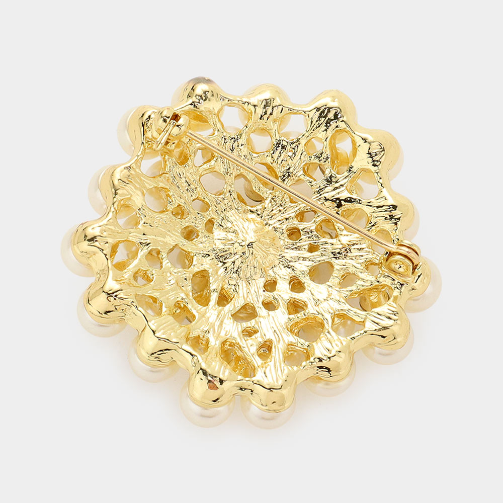 Cluster Pearl Rhinestone Pave Flower Brooch
