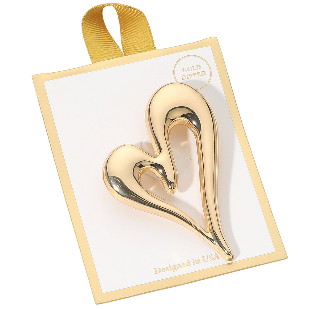 Details • Size : 1.7" X 2.1" • Pin Brooch • Elegant abstract heart brooch featuring a smooth, sculptural silhouette with artistic curves. A standout accessory perfect for jackets, scarves, dresses or bags, adding romantic yet contemporary flair. Ideal for special occasions or elevating everyday style with a unique statement touch. • Gold Dipped • Lead and Nickel Compliant