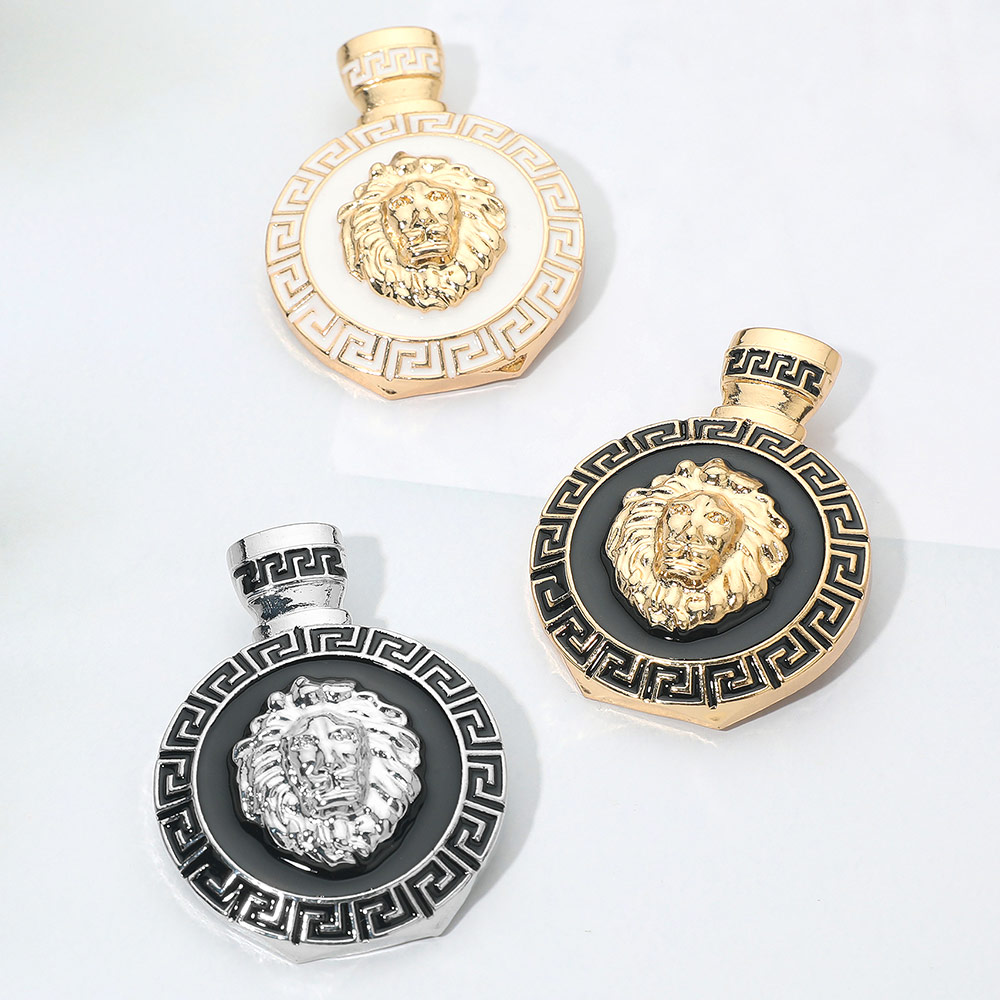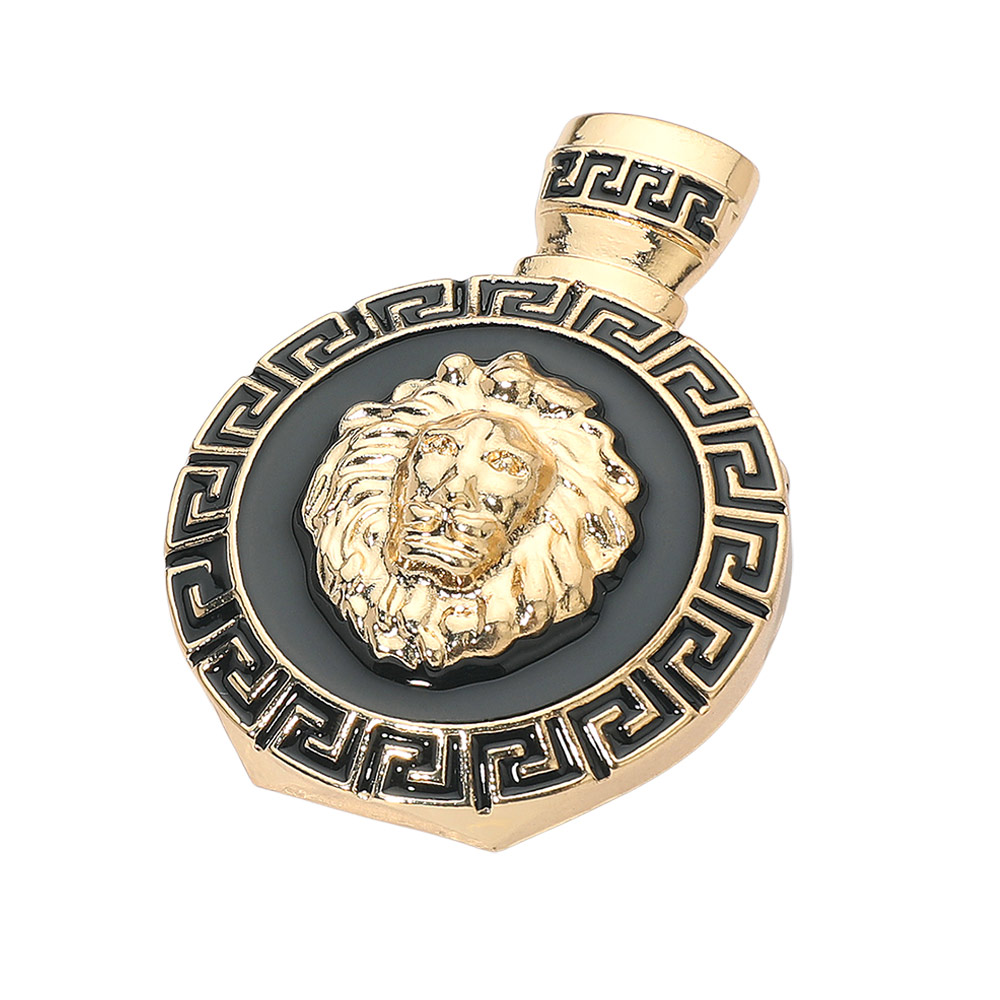 Greek Pattern Rim Round Lion Head Emblem Pim Brooch