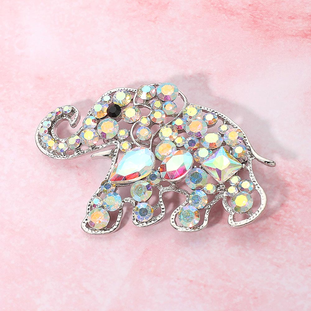 Details • Size : 2.75" X 1.75" • Pin Brooch • Bring charm and elegance to your look with this jeweled elephant brooch, adorned with sparkling stones for a radiant finish. Perfect as a statement accessory, it adds a playful yet sophisticated touch to jackets, dresses, scarves, or bags. A versatile animal pin ideal for gifting or personal style. • Lead and Nickel Compliant