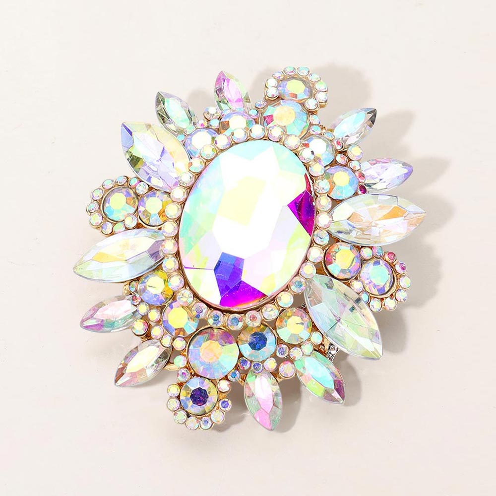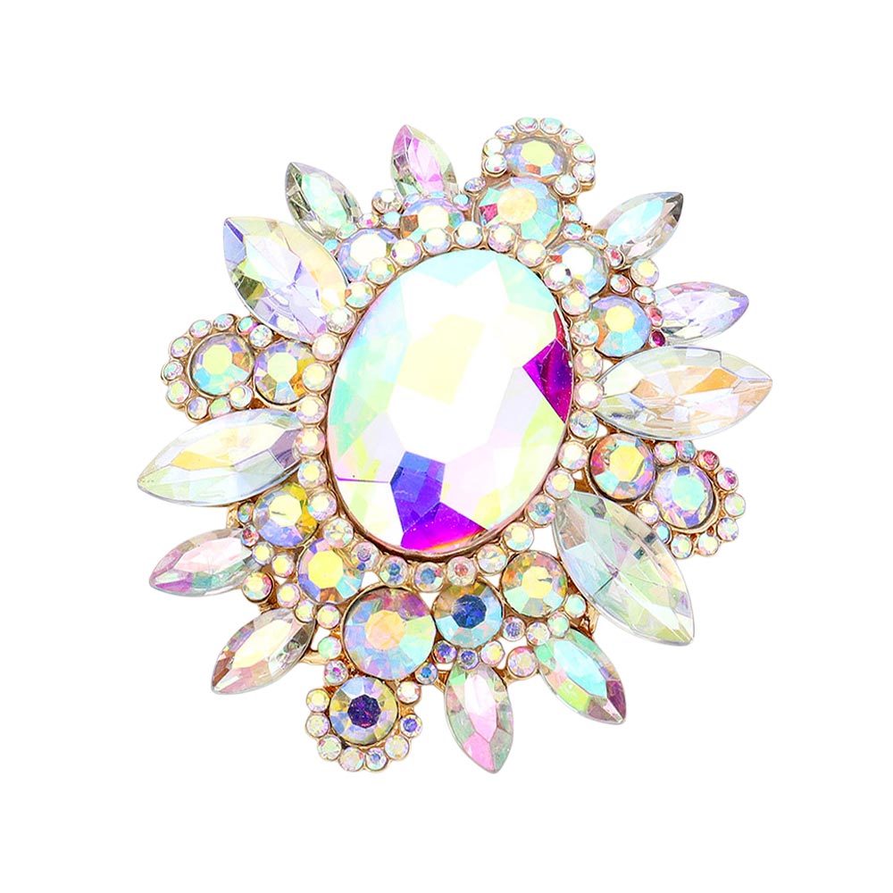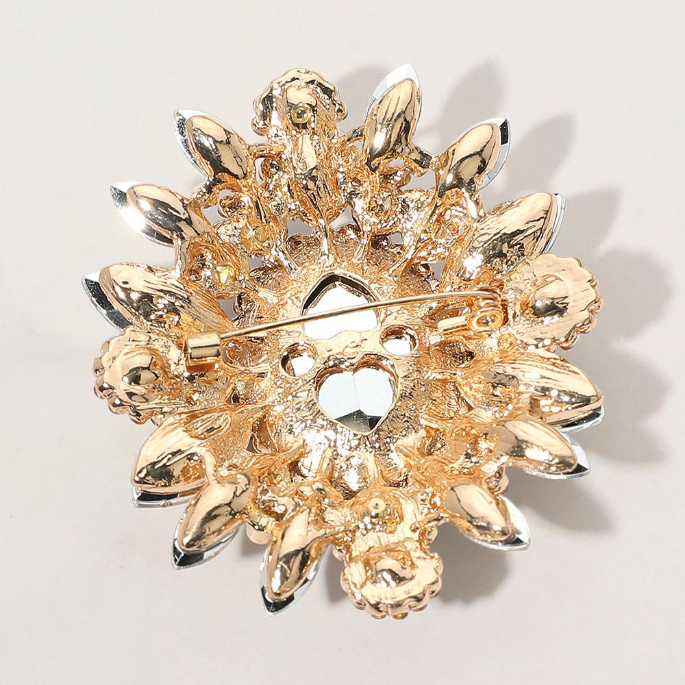 • Make an unforgettable statement with this radiant floral brooch featuring brilliant sparkling stones arranged around a large center gem. Its eye-catching shimmer adds sophistication to jackets, scarves, bags, and dresses, making it the perfect accessory for special occasions or elegant everyday styling.