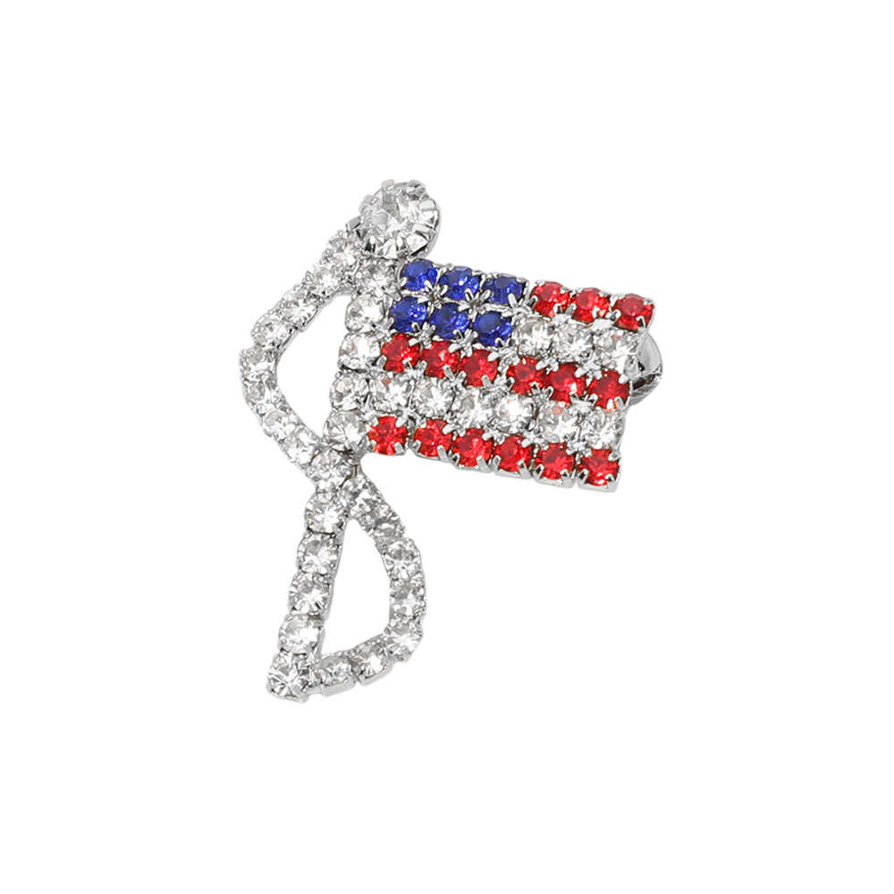 Details • Size : 1" X 1.25" • Pin Brooch • Statement flag inspired brooch designed with a flowing ribbon silhouette and shimmering rhinestone accents. A bold decorative accessory ideal for jackets, coats, scarves, hats, bags, and event outfits. Perfect for patriotic celebrations, themed events, gifting, or adding eye catching detail to everyday styling. • Lead and Nickel Compliant