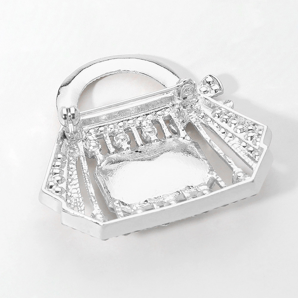 Details • Size : 2.1" X 2" • Pin Brooch • Elevate your style with this handbag-shaped brooch, featuring a large faceted crystal centerpiece, bow detail, and shimmering stones. A chic accessory for fashion lovers, it adds sparkle and charm to outfits for everyday or special occasions. • Lead and Nickel Compliant