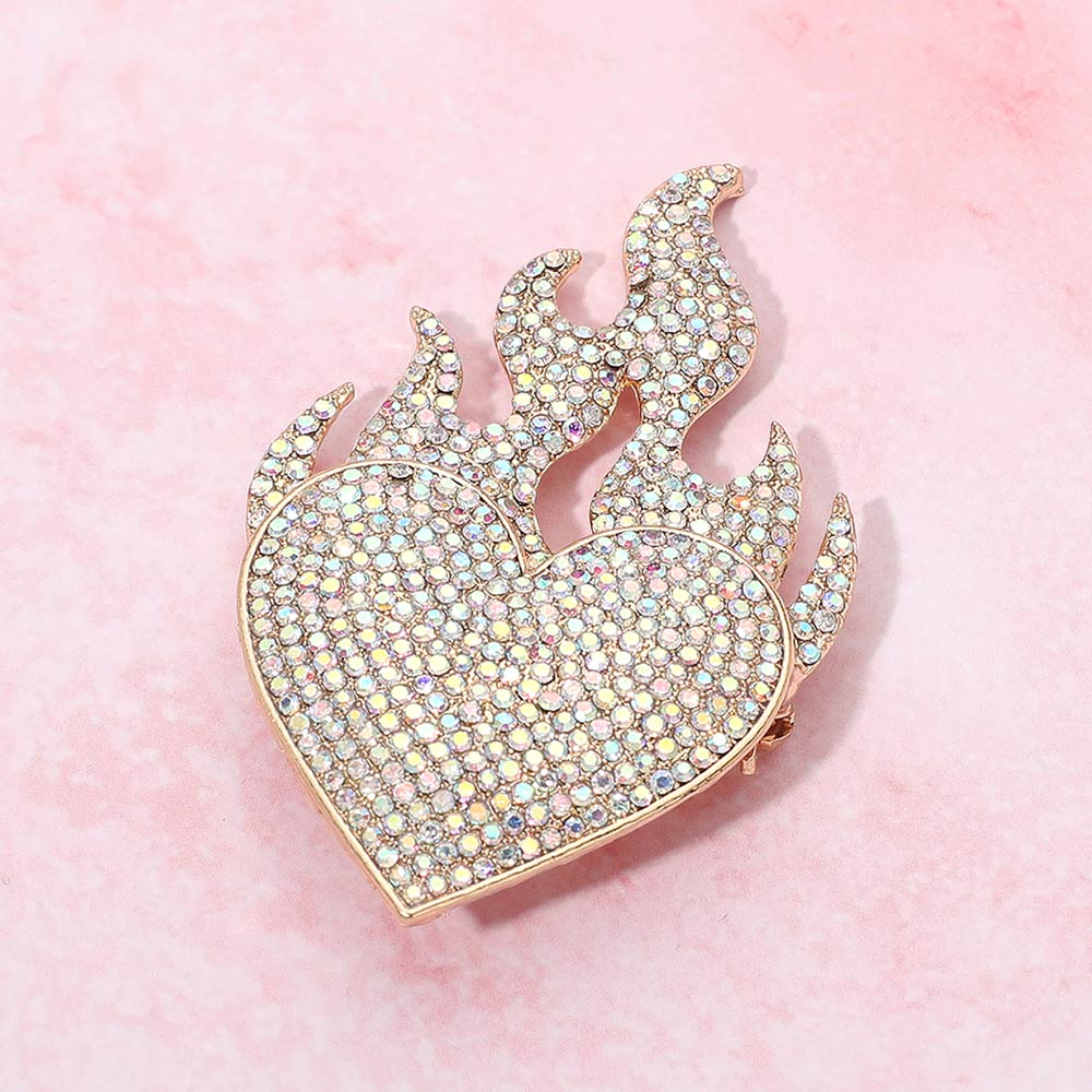 • Bold heart flame brooch designed with sparkling crystal details for eye-catching style. A dramatic statement accessory perfect for jackets, dresses, bags, and special occasions, adding glamour, edge, and fashion-forward appeal to any outfit.