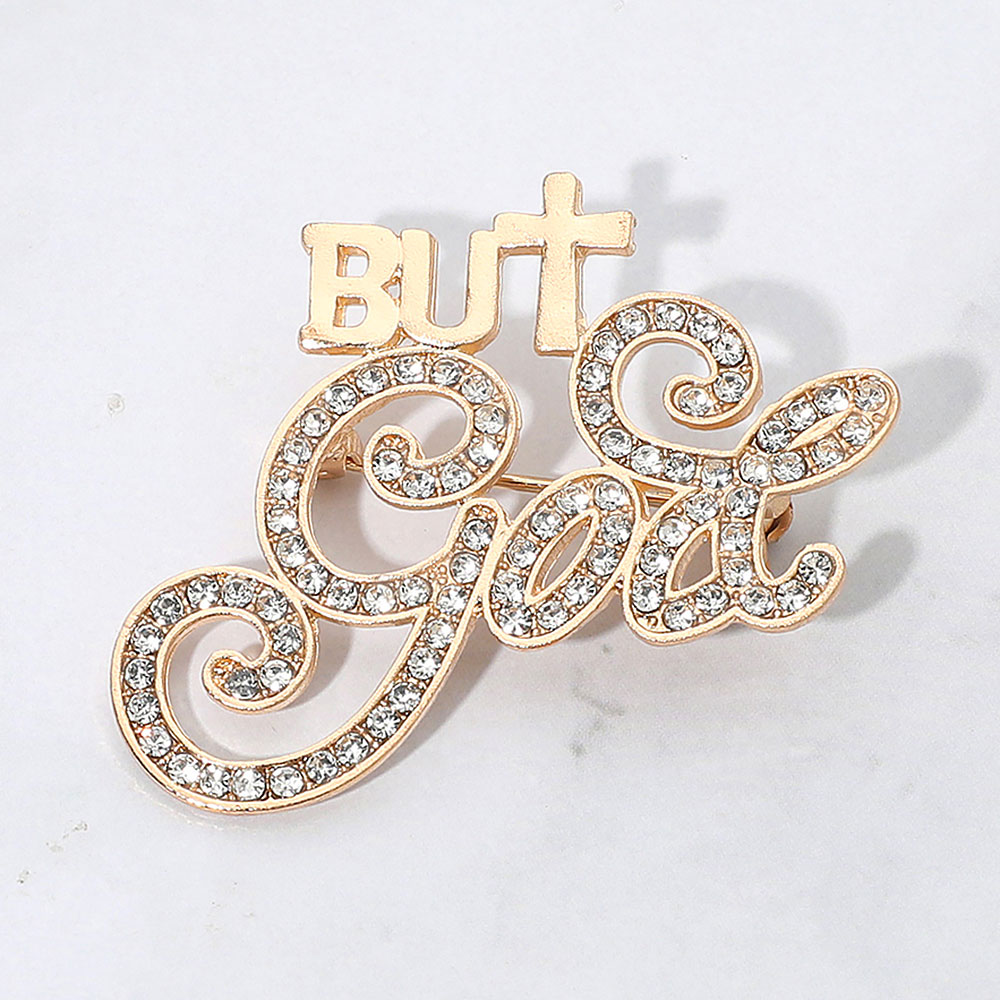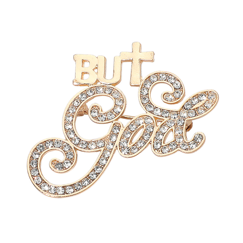 • Faith-inspired brooch featuring the uplifting phrase “But God” in sparkling crystal detail. This elegant accessory adds a meaningful touch to any outfit, symbolizing hope and grace while enhancing your look with refined shine and spiritual charm.