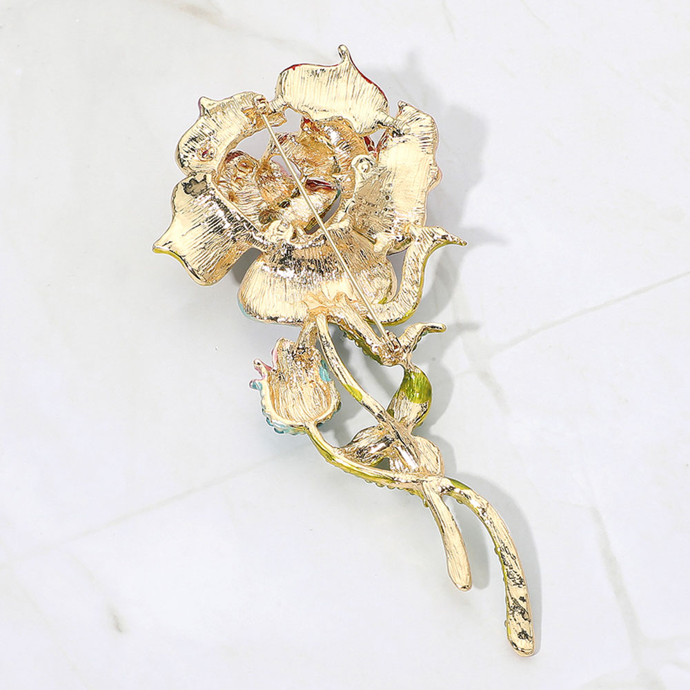 Bold Elegant Rhinestone Rose Stem Pin Brooch
