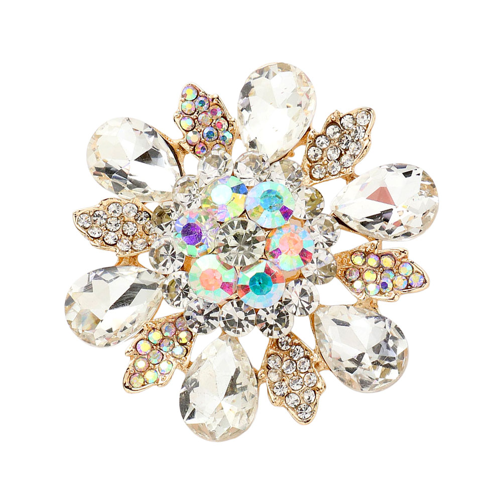 Details • Size : 2.5" x 2.5" • Pin Brooch • This elegant crystal flower brooch adds a radiant touch to any outfit with its beautifully arranged sparkling stones and refined floral silhouette. Perfect for elevating everyday looks or enhancing formal attire, it offers timeless charm and eye-catching brilliance. • Lead and Nickel Compliant