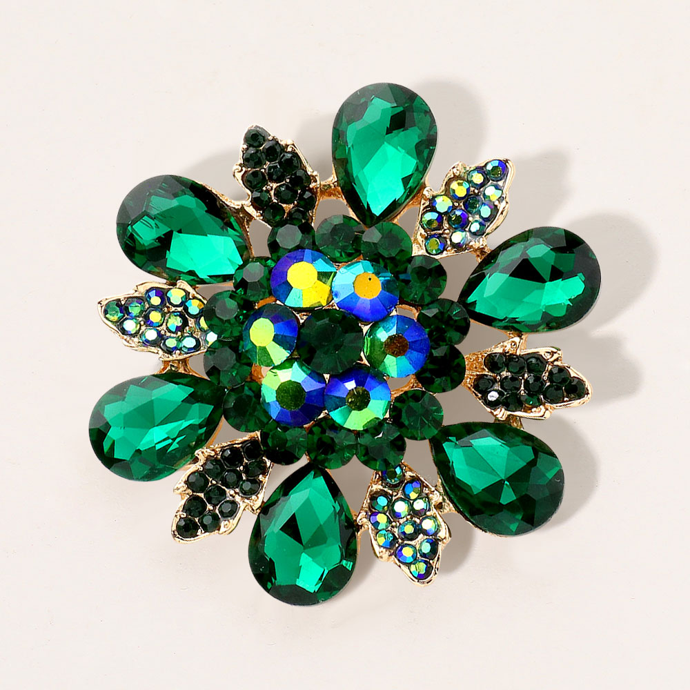 Details • Size : 2.5" x 2.5" • Pin Brooch • This elegant crystal flower brooch adds a radiant touch to any outfit with its beautifully arranged sparkling stones and refined floral silhouette. Perfect for elevating everyday looks or enhancing formal attire, it offers timeless charm and eye-catching brilliance. • Lead and Nickel Compliant