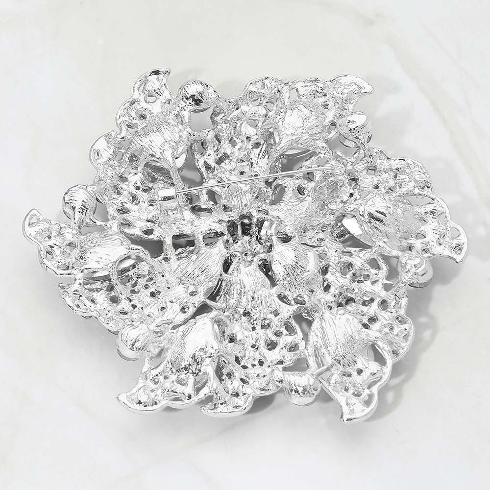 Details • Size : 4" X 4" • Pin Brooch • Elegant floral brooch featuring dazzling gemstone accents arranged in a radiant petal design. Perfect for adding a touch of glamour to jackets, dresses, or scarves, this statement accessory enhances any outfit with a refined and eye-catching sparkle. • Lead and Nickel Compliant