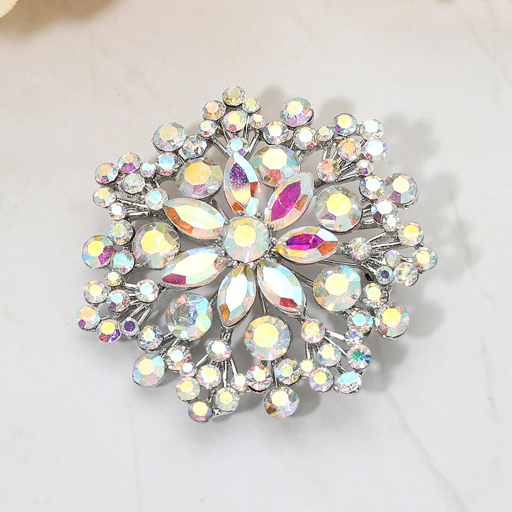 • Eye-catching floral statement brooch designed with layered crystal accents arranged in a radiant cluster silhouette. This decorative pin adds elegant sparkle and dimension to jackets, scarves, dresses, and accessories, making it ideal for formal styling, seasonal collections, and fashion-forward displays.