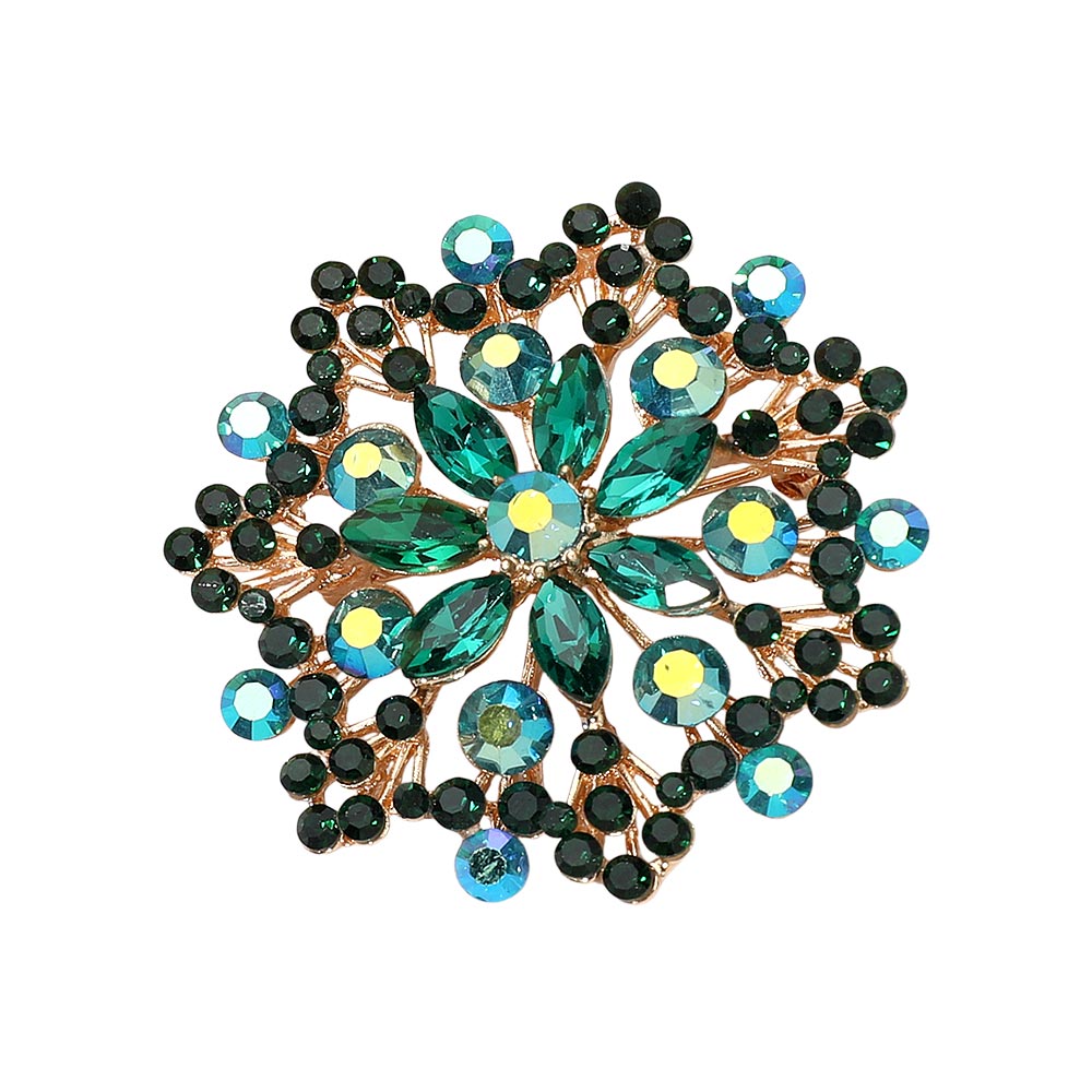 • Eye-catching floral statement brooch designed with layered crystal accents arranged in a radiant cluster silhouette. This decorative pin adds elegant sparkle and dimension to jackets, scarves, dresses, and accessories, making it ideal for formal styling, seasonal collections, and fashion-forward displays.