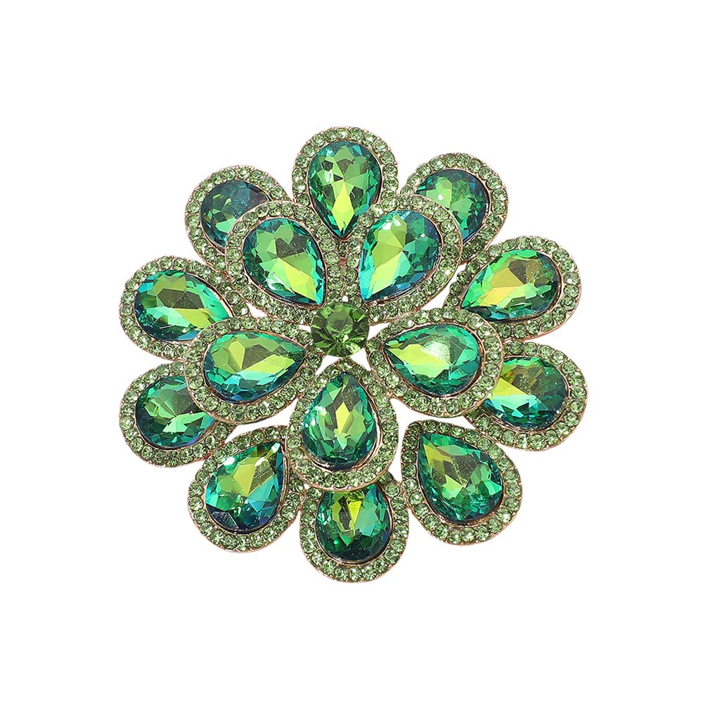 • Eye-catching floral brooch designed with layered teardrop-shaped crystal accents forming a radiant flower silhouette. A bold statement piece ideal for jackets, dresses, scarves, and special occasion styling, perfect for gifting or elegant everyday looks.
