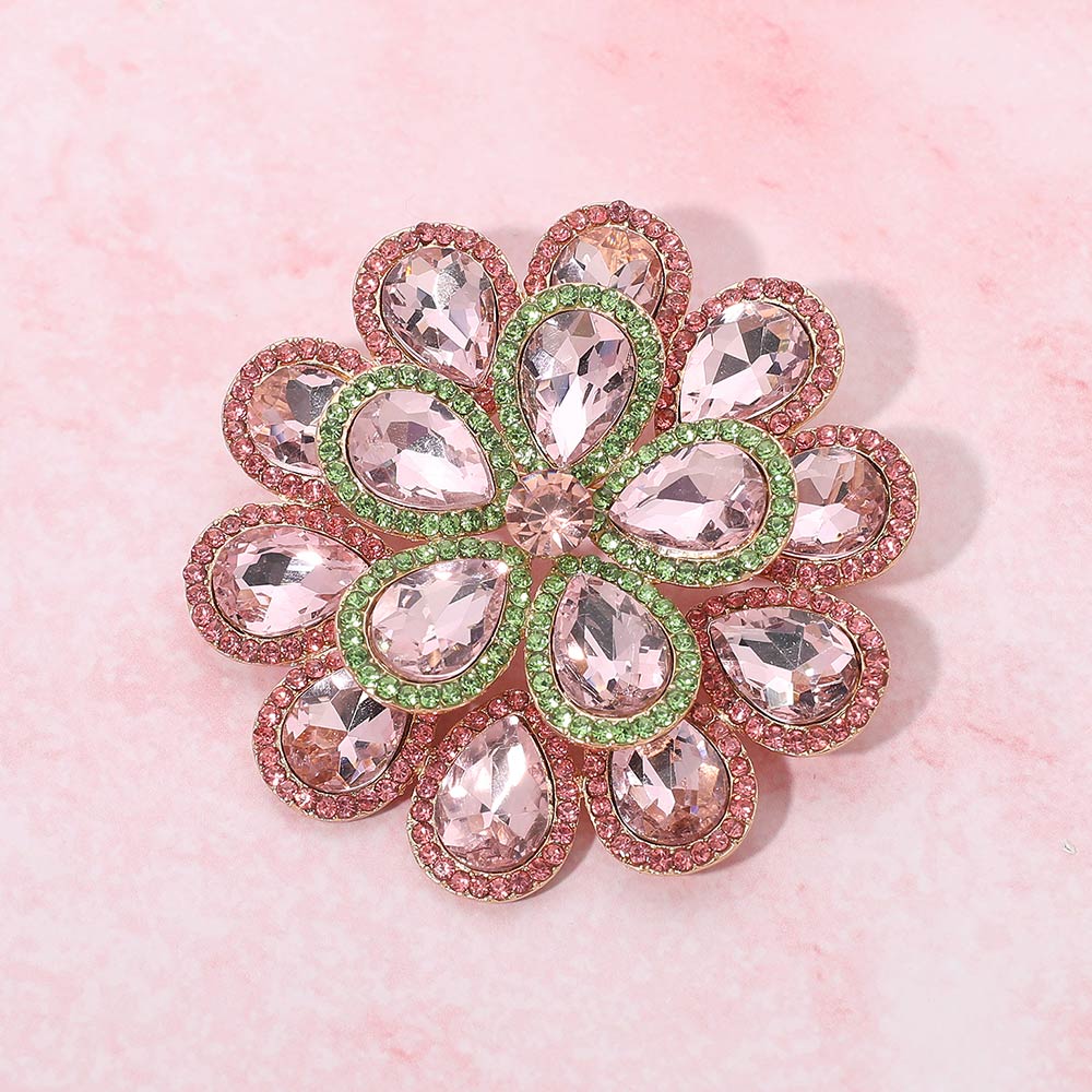• Eye-catching floral brooch designed with layered teardrop-shaped crystal accents forming a radiant flower silhouette. A bold statement piece ideal for jackets, dresses, scarves, and special occasion styling, perfect for gifting or elegant everyday looks.