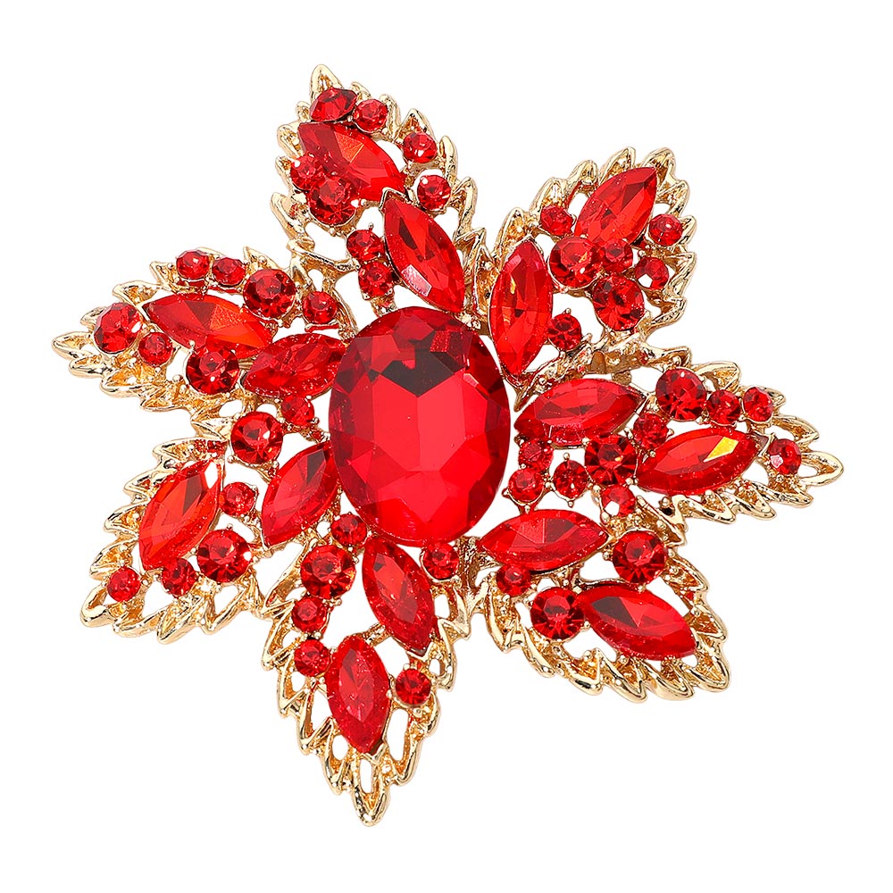 • This ornate floral brooch features an intricately layered design with a bold faceted centerpiece surrounded by shimmering accents. Its radiant, sculpted silhouette adds a refined touch to formalwear, evening outfits, or special-occasion ensembles, creating a timeless statement full of sophistication.