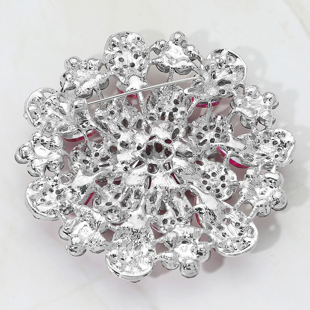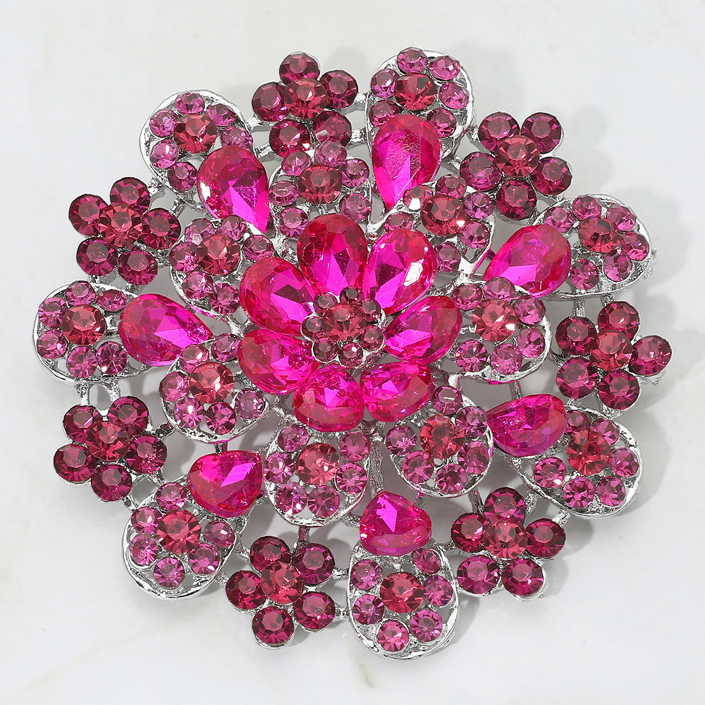 Details • Size : 3.7" L • Pin Brooch • Brilliant flower brooch adorned with iridescent crystals in layered petal design. A dazzling statement piece for dresses, scarves, or jackets, adding glamour and elegance to weddings, parties, or special occasions. • Lead and Nickel Compliant