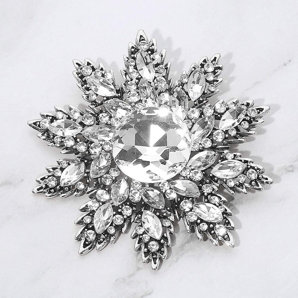 • Make a statement with this crystal floral starburst brooch, featuring a radiant layered design and a brilliant center stone that catches the light beautifully. A versatile accessory for elevating jackets, scarves, handbags, or special occasion looks.