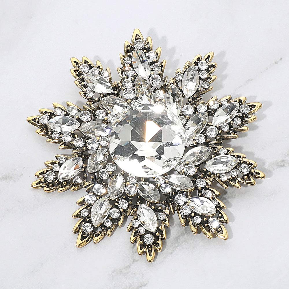 • Make a statement with this crystal floral starburst brooch, featuring a radiant layered design and a brilliant center stone that catches the light beautifully. A versatile accessory for elevating jackets, scarves, handbags, or special occasion looks.