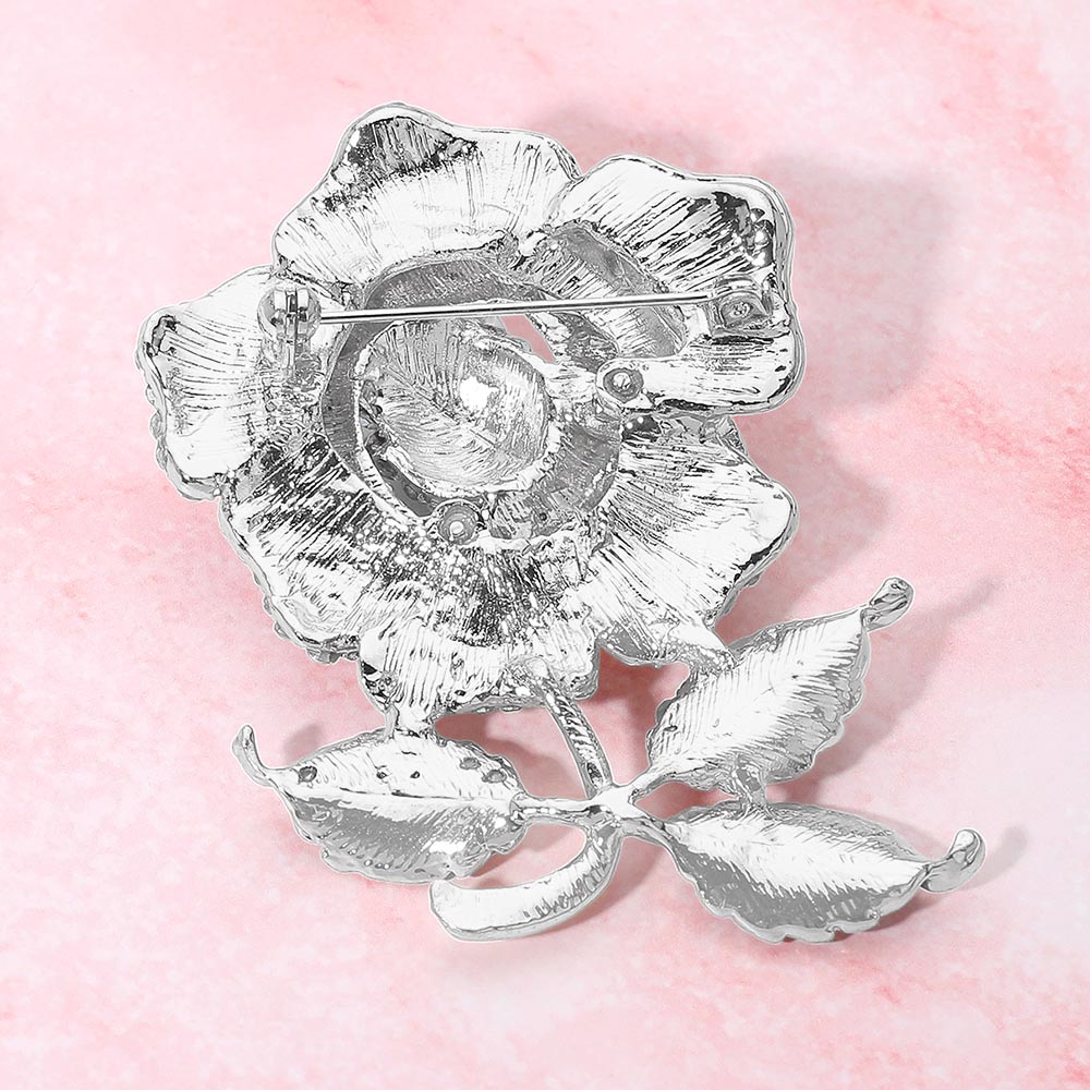 Details • Size : 2.25" X 3" • Pin Brooch • Add a touch of romance and sparkle with this crystal rose brooch, beautifully designed with shimmering stones for a radiant look. Perfect as a statement accessory on jackets, dresses, scarves, or handbags, this floral pin is ideal for weddings, special occasions, or as a thoughtful gift for someone special. • Lead and Nickel Compliant