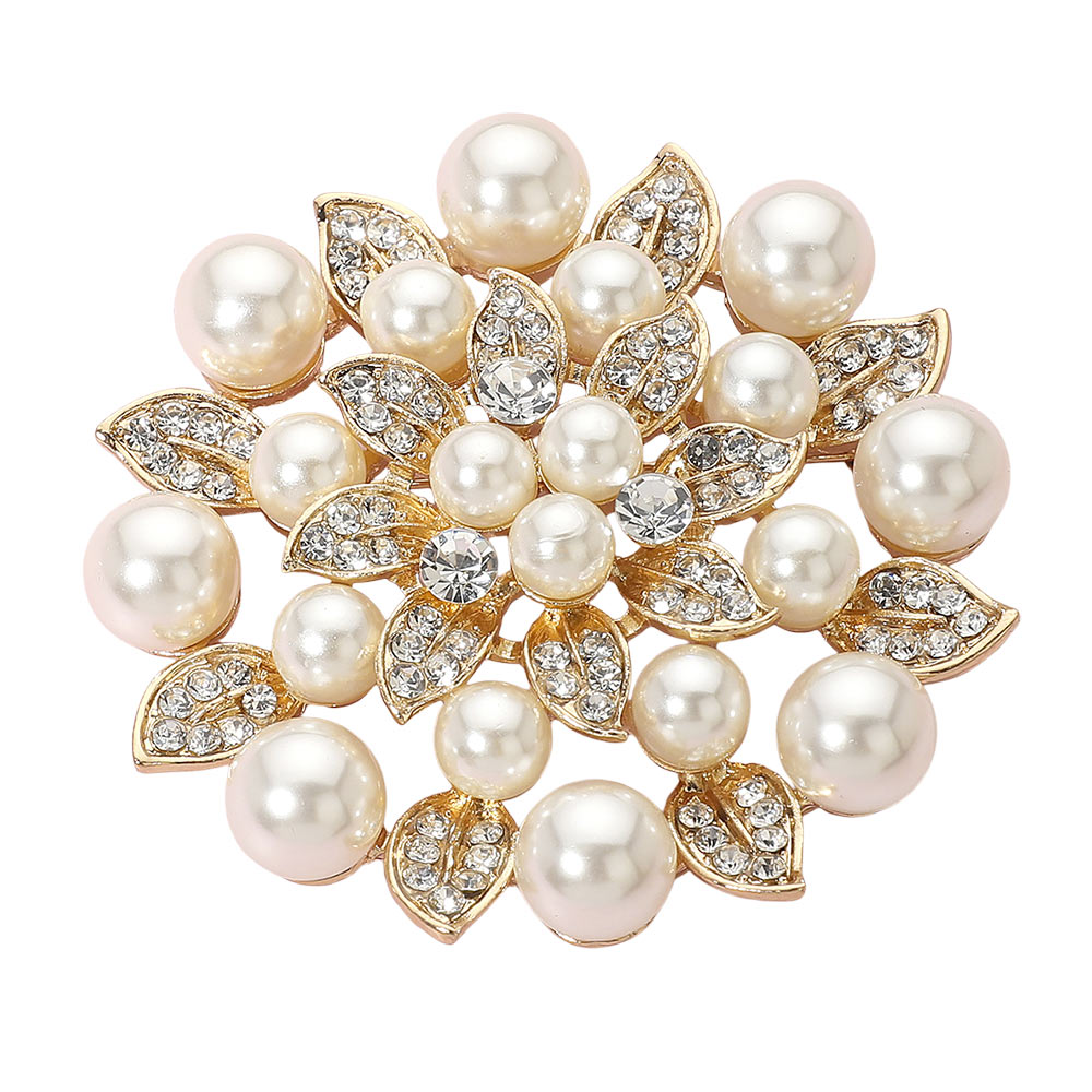 Details • Size : 2.8" X 2.8" • Pin Brooch • Enhance your style with this crystal flower brooch, designed with sparkling stones arranged in a floral and leaf motif. A versatile accessory perfect for weddings, parties, or daily wear, this elegant pin adds charm to jackets, scarves, handbags, or hats and makes a thoughtful gift for someone special. • Lead and Nickel Compliant