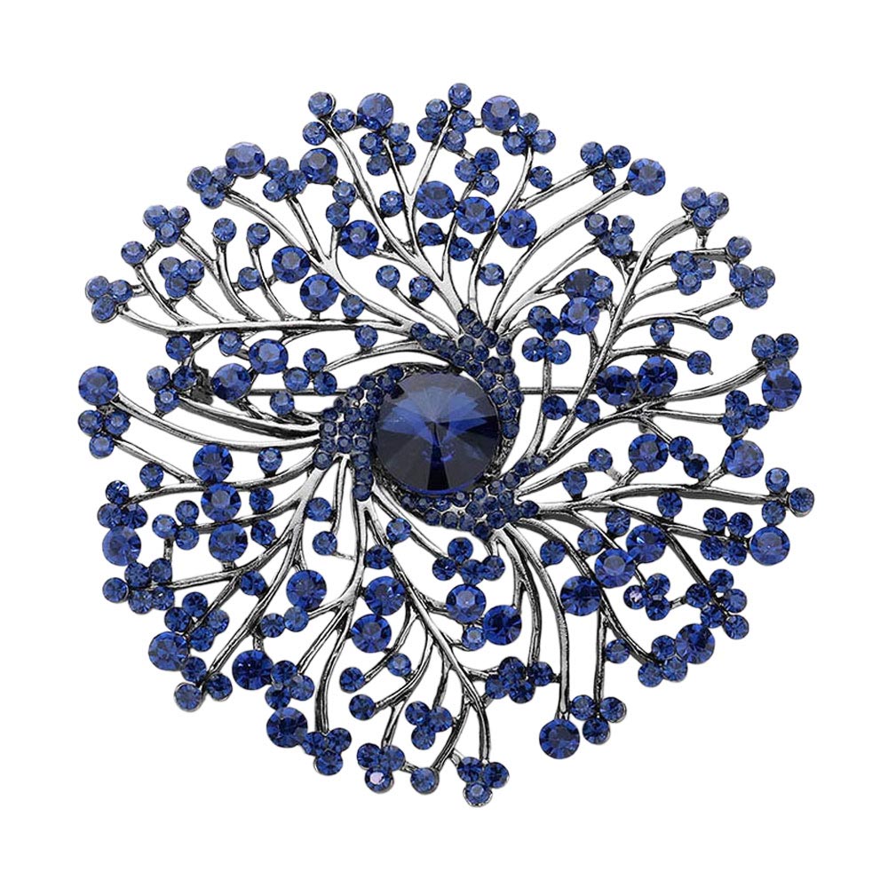 Details • Size : 3.6" X 3.6" • Pin Brooch • A dazzling brooch featuring an intricate burst design that captures light beautifully for an elegant, eye-catching finish. Perfect for adding a refined touch to formal wear, accessories, or special-occasion outfits with its sparkling, detailed craftsmanship. • Lead and Nickel Compliant