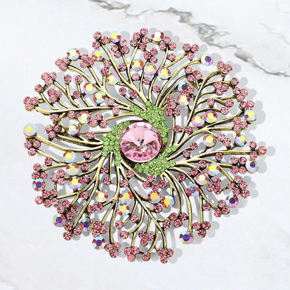 Details • Size : 3.6 X 3.6" • Pin Brooch • A dazzling brooch featuring an intricate burst design that captures light beautifully for an elegant, eye-catching finish. Perfect for adding a refined touch to formal wear, accessories, or special-occasion outfits with its sparkling, detailed craftsmanship. • Lead and Nickel Compliant